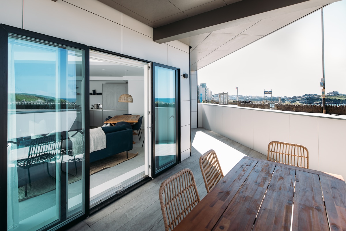 With Stunning views across Fistral Bay we think our Mediterranean inspired apartment has everything you need for a truly memorable beachfront break. Our open plan apartment is designed to make the most of the incredible views including a private terrace. Find your perfect spot to simply sit back and watch the surf roll in. Boasting a fully equipped modern kitchen, comfortable sitting area, two generous bedrooms and bathroom we believe the apartment has everything you need for the perfect escape.