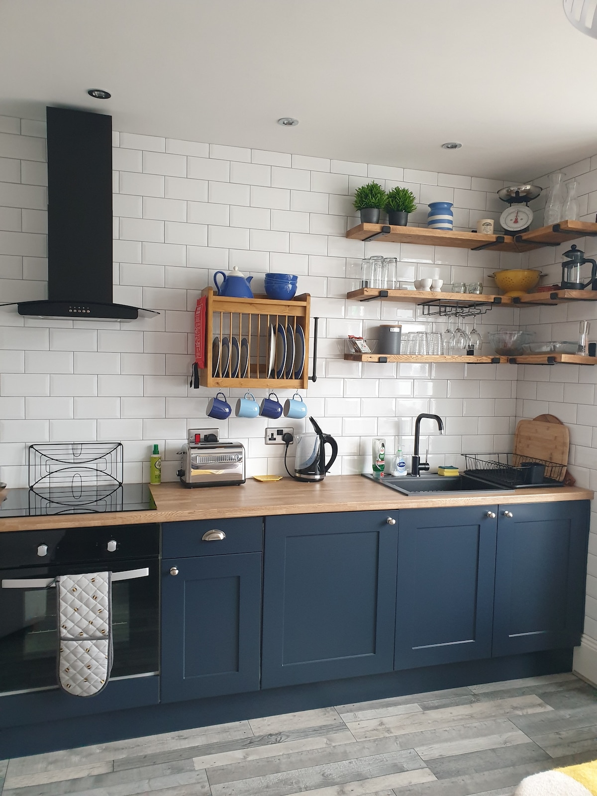 A brand new bright and airy studio annex, with off road parking for 1 car and more on the road. The annex is beautifully decorated with a king size cosy bed, that then leads to the private outside space. There is a fully fitted kitchen with dishwasher. A smart TV and WiFi. You have your own private entrance, which is where you will find the key safe. There are sliding doors to a private outside space, which has cosy chairs and a BBQ.