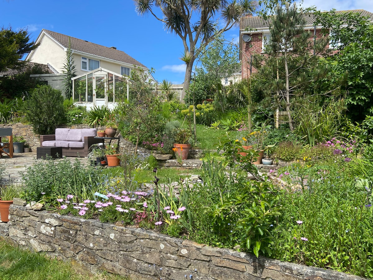 The Garden Retreat is a lovely, recently created space providing guests with their own private garden and seating, a comfy bedroom, including sofa area and ensuite with a large shower. We are in a fantastic location close to great amenities and a 5-10 min walk from 3 stunning beaches. It is part of our home, has it's own entrance and is separate to the main house. We will share a garden path and you may well see us out and about but we will leave you relaxed and peaceful to enjoy your own space