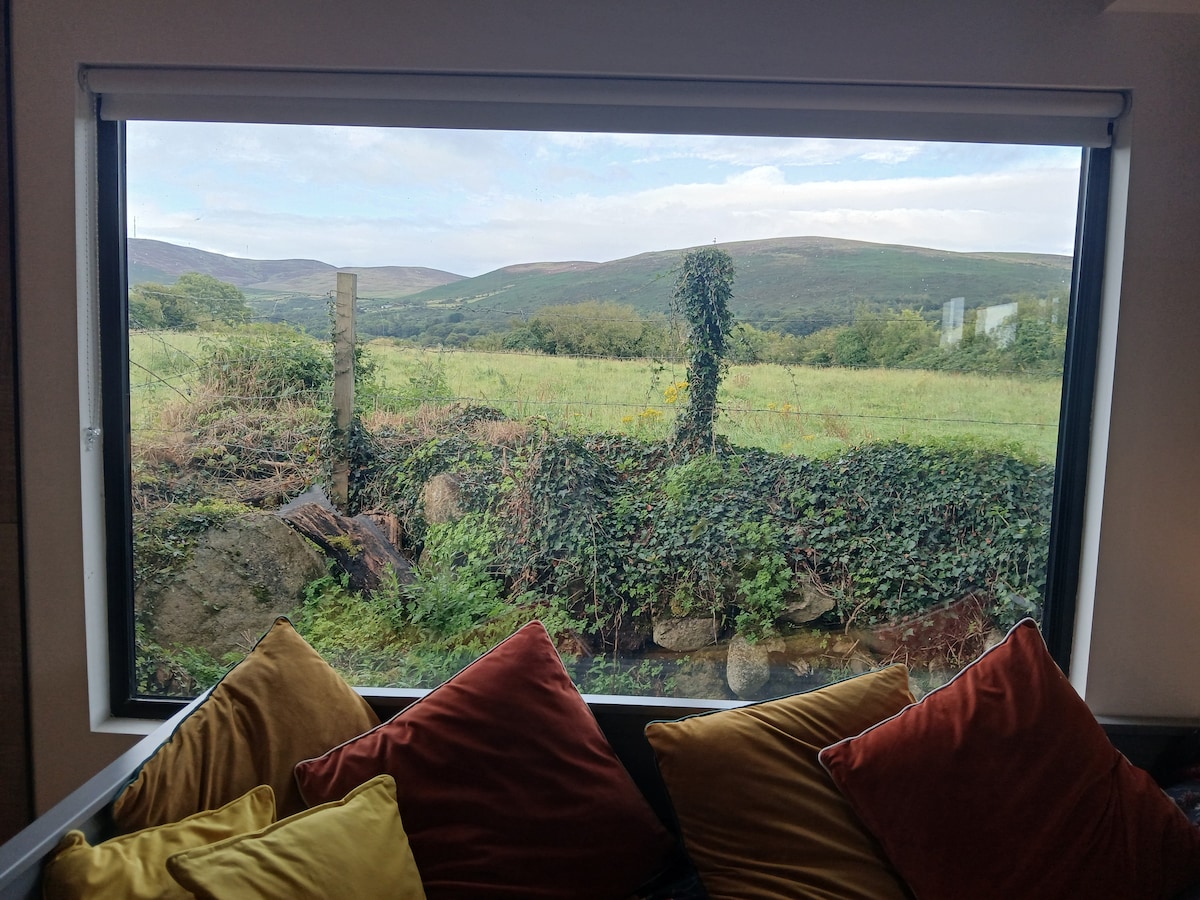 Enjoy the setting of this romantic spot on a working sheep and cattle farm in the Dromara Hills, nestled in nature. Between Castlewellan and Dromara, 15min drive to Newcastle, 25min from Belfast. A couples retreat with a new electric hot tub in the middle of a mountain, sheep as the only possible disturbance. Guests are welcome to meet and greet our animals at the gate up to the hut. Honey the Falabella horse, 5 pygmy goat and our Free range hens, who give our guests eggs in our welcome pack.
