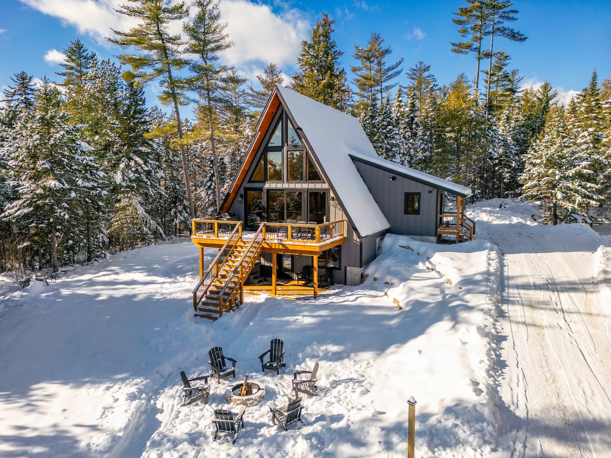 Three Peaks Cabin is located at 110 Yawkey Way, Bryant Pond, Maine. The home is located on a private street maintained by our HOA association. There are 6 total houses which included "Three Peaks Cabin". The property is located all the way up a steep paved road, last house on the right at the end of the culdesac.