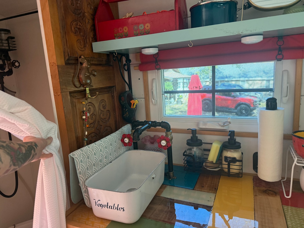 贾斯珀微型住宅,带燃木热水浴缸