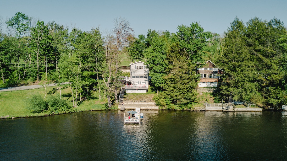 Intimate Lakefront country cottage on beautiful House Pond. Just 3 minutes from the Lake Wallenpaupack boat launch and 5 minutes from shopping, restaurants, bars, boat tours, fantastic hiking trails, and more. At this quiet, newly renovated (2022) retreat, you can experience great fishing, incredible sunrises and sunsets, bald eagles, blue herons, deer, various birds, and other wildlife. Relax and dine on the deck or lakeside flagstone patio while enjoying crackling embers in the fire pit.