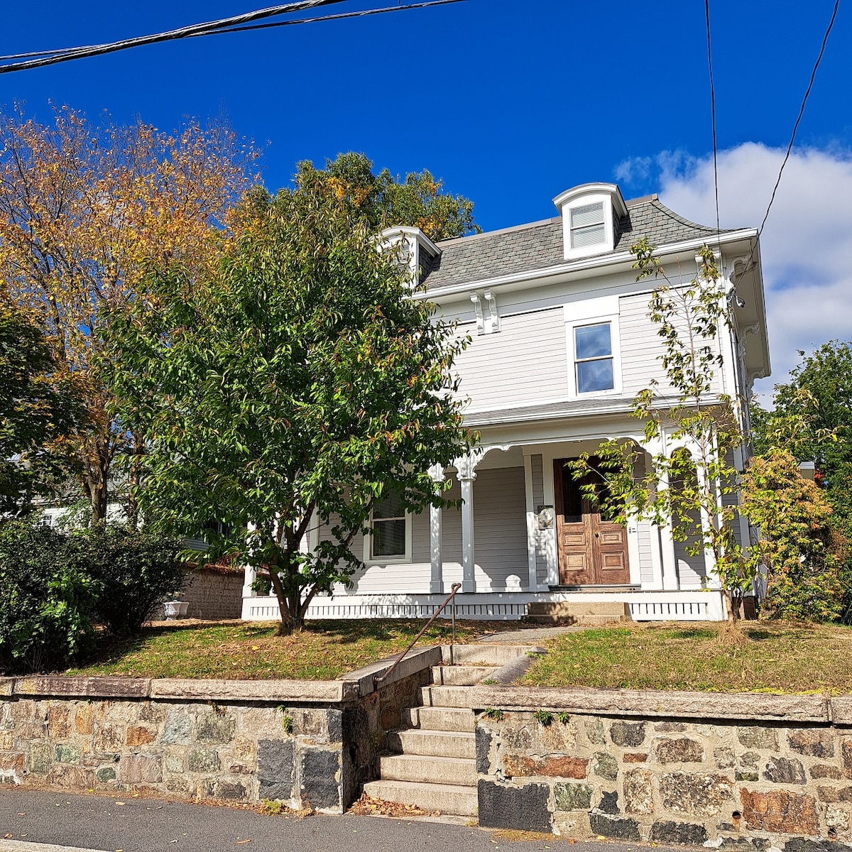 Welcome to our cozy home. Our place blends historic charm with modern comfort. Enjoy a large, fenced yard with a grill, fire pit, and deck to relax. Inside, you'll find a well-equipped kitchen and a dining room. We offer three bedrooms with comfortable mattresses and soft bedding. The living room has a big TV with cable and streaming apps, plus high-speed Wi-Fi. Families with dogs are warmly welcomed.
