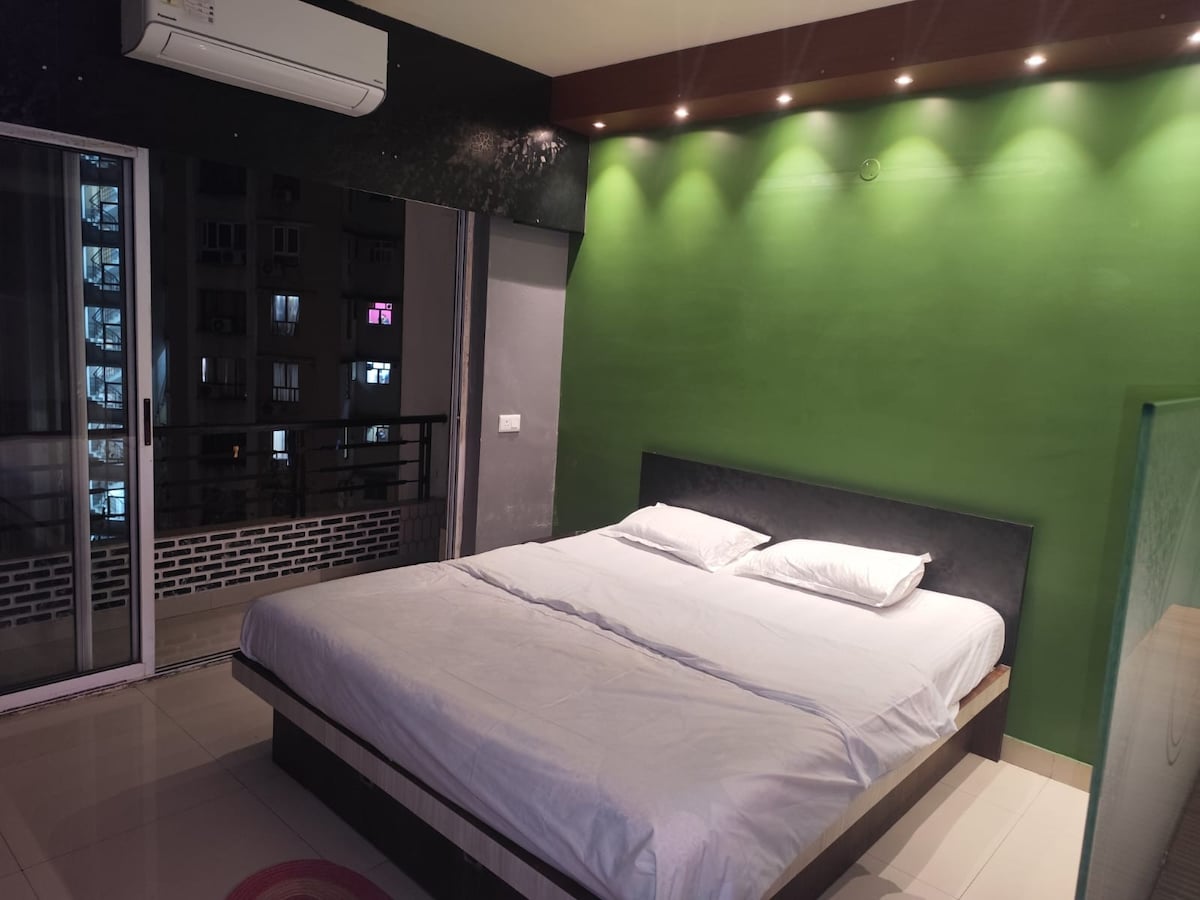 BLUO Stays - Award winning Sanitized Homes! Private, Lake view 1BHK Home (500 sq ft) at New Town near Biswa Bangla Gate & Eco Park, ideal for Business & Leisure Travellers. Bedroom with King Bed, Bathroom, Living Room with Couch & Dining plus Full Kitchen with Cooktop, Fridge, Microwave, cookware etc. All-inclusive Daily Tariff - WiFi Internet, Netflix/Smart TV, Cleaning, Washing Machine, Utilities, Parking, Power Backup, Gym, Terrace Garden..