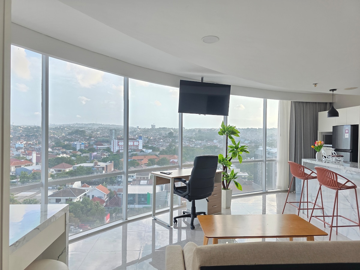 Apartment 3 rooms with beds: 2 king ,1 Single, 1 sofabed. 5 mins from Simpang Lima ,Tugu Muda and Paragon Mall. 15 Mins from Airport,Train Station,and Semarang Old Town.Available for short and long term stay. Spacious..cozy..new and clean.. The building nearby Setos (Semarang Town Square) or MG Hotel.