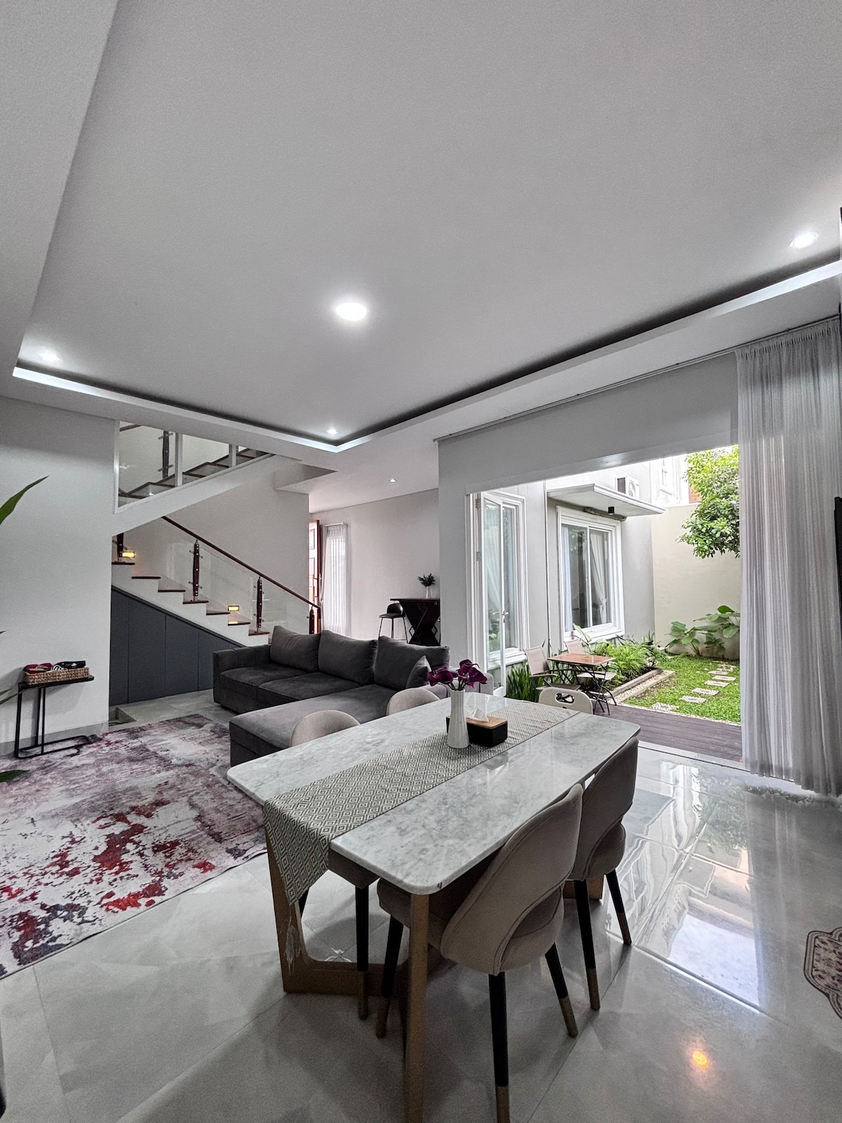 Casalista House: Modern Oasis in the City Kamar 1 (lantai 1): 2 kasur ukuran 140x200 (muat 4 orang) Kamar 2 (lantai 2): 1 kasur ukuran 200x200 (muat 2 orang) Kamar 3 (lantai 2): 1 kasur ukuran 140x200 (muat 2 orang) Escape to our stunning 2-story minimalist home, nestled in a quiet gated community. Our beautiful garden creates a fresh and peaceful atmosphere, making it an ideal retreat for families, friends, and couples.