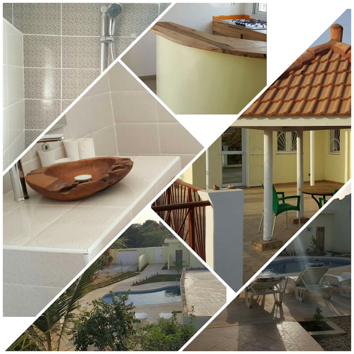 Ce logement élégant se situe à proximité des sites incontournables de la région : village artisanal, lagune de la Somone, Réserve de Bandia, parc exotique, Delta du Saloum… A 2 minutes à pied de la plus belle plage de Saly Obama Beach, il offre tout le confort moderne. Le studio se situe sur notre propriété, accès piscine, jacuzzi à température ambiante (accès privatisé pendant votre séjour) pool house avec cuisine, BBQ, transats et jardins.