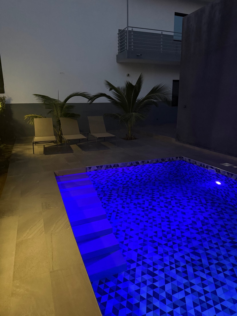 Bienvenue a la Maison Bleu Horizon , petit paradis en bord de mer dans le village de Saly. Cet appartement est une invitation à la détente et à l'évasion . Imaginez un cadre idyllique où le bleu infini de l'océan se confond avec l'horizon , offrant une vue panoramique à couper le souffle depuis le terrasse . Vous êtes également à quelques minutes des magasins , des restaurants et des bars