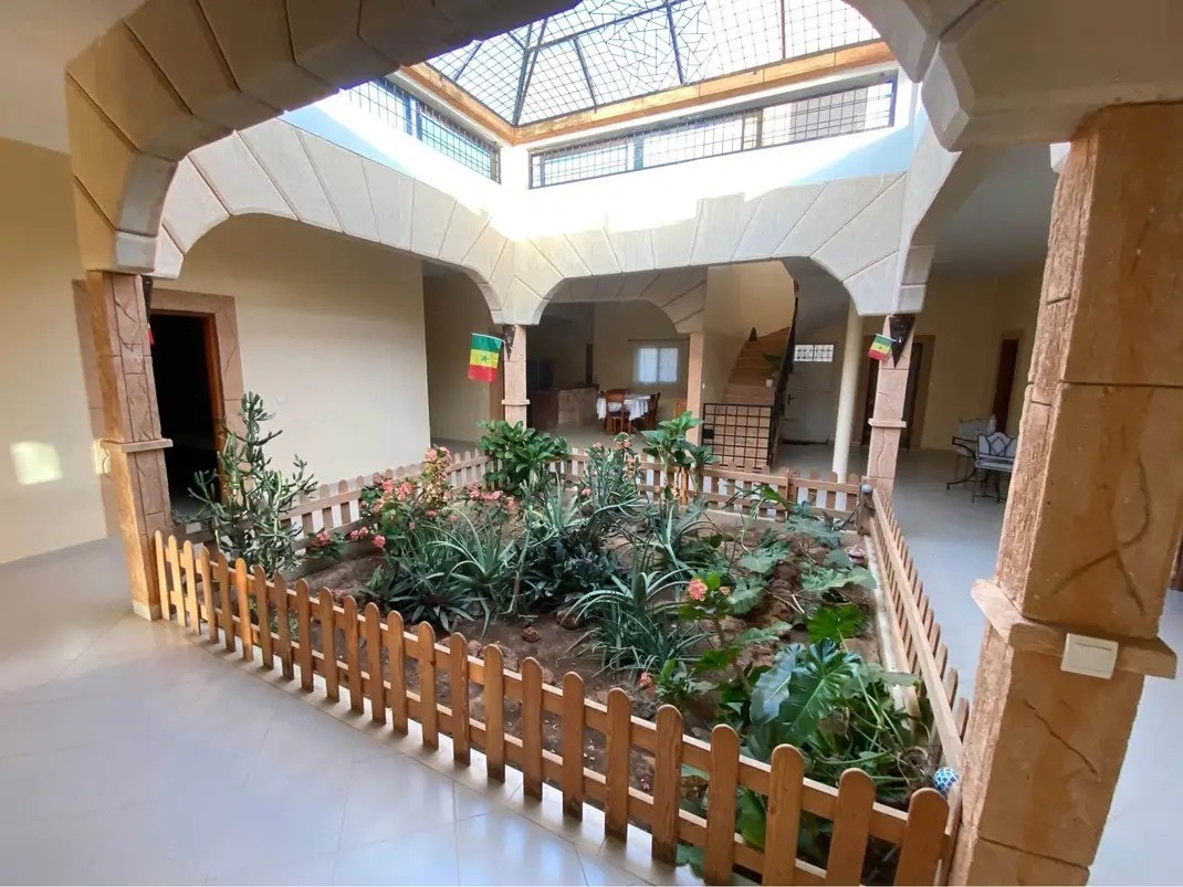 Serviced Villa Residence Somone is a Moorish-style home blending African art with modern amenities, just a five-minute walk from a sandy beach with calm waters. The villa offers spacious rooms with artisan-crafted rosewood furniture, a pool, a veranda, a serene garden, a panoramic rooftop terrace, fast Wi-Fi, a barbecue, and multiple air conditioners. Two dedicated staff members are available for cleaning and laundry. Cooking services are optional, and a driver can be arranged upon request.