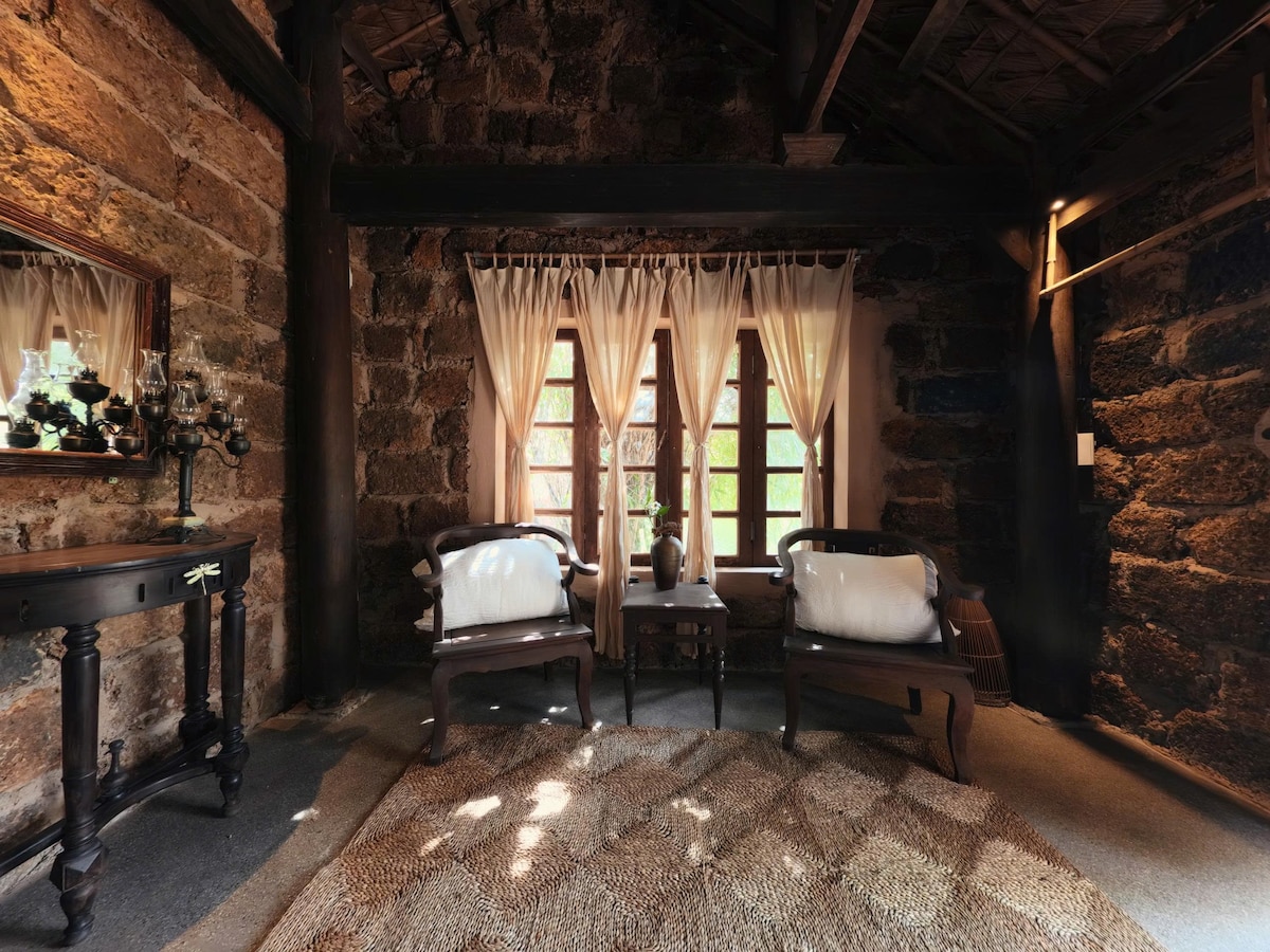 The Lychee Bungalow (natural laterite) is designed based on the inspiration from the hammock making village from hemp of the Tho ethnic group in Western Nghe An, a unique traditional cultural feature. The small sleeping area, large toilet and spacious porch full of sunlight and wind next to the bamboo hut, a place for yoga and meditation. Natural laterite material is good at soundproofing and heat insulation, helping the room warm in winter and cool in summer.