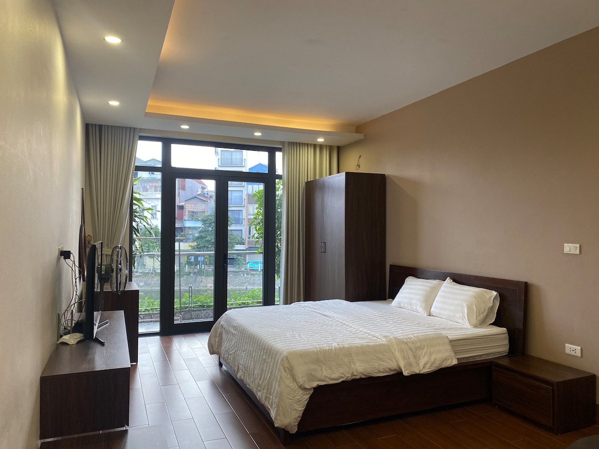 Newly built lake view building which is suitable for short to longterm rent, having a fully function shared laundry plus kitchen and garden space for rental guests only. The house is located in Long bien district, lake view and only takes 10 minutes to the city center by taxi or we also offer free airport pick up service for guests who stay more than 3 nights..