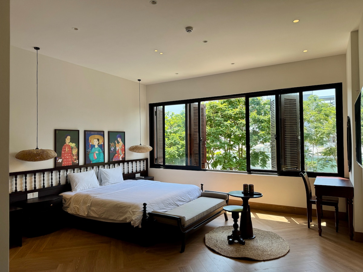 Family rooms lie on the 2nd floor surrounded by flowers and plants. Each room has a balcony with a stunning view of the whole place and the pool. Family Rooms are 60 meters square large. It contains 02 double beds, a bathroom, a kitchen, and a balcony. The room is suitable for 04 adults and 1 kid under 6 years old. Breakfast is NOT included . We have Free bicycles services and Afternoon tea.