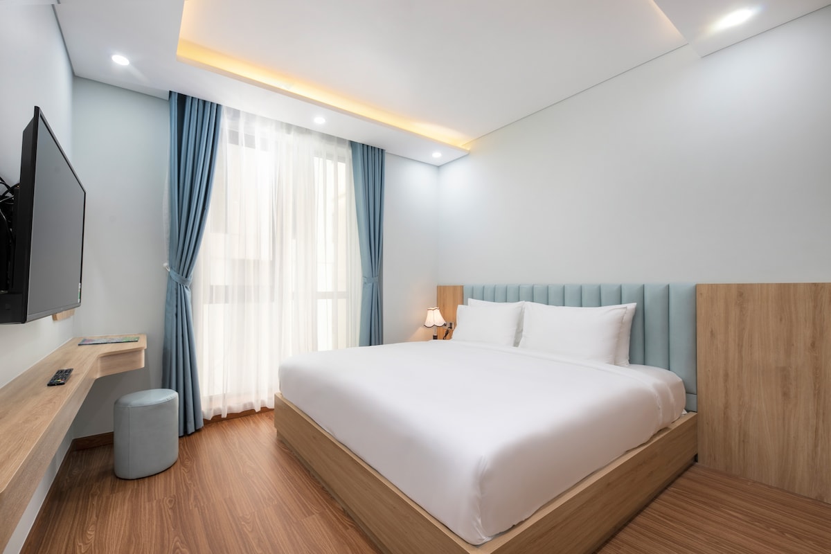 + The room is designed in a modern style combined with warm colors to bring a relaxing feeling when you rest during your trip. + Our hotel is very close to My Khe Beach, only 2-5 minutes walk away. + Located right in the center of walking street, tourist center for foreigners coming to Da Nang