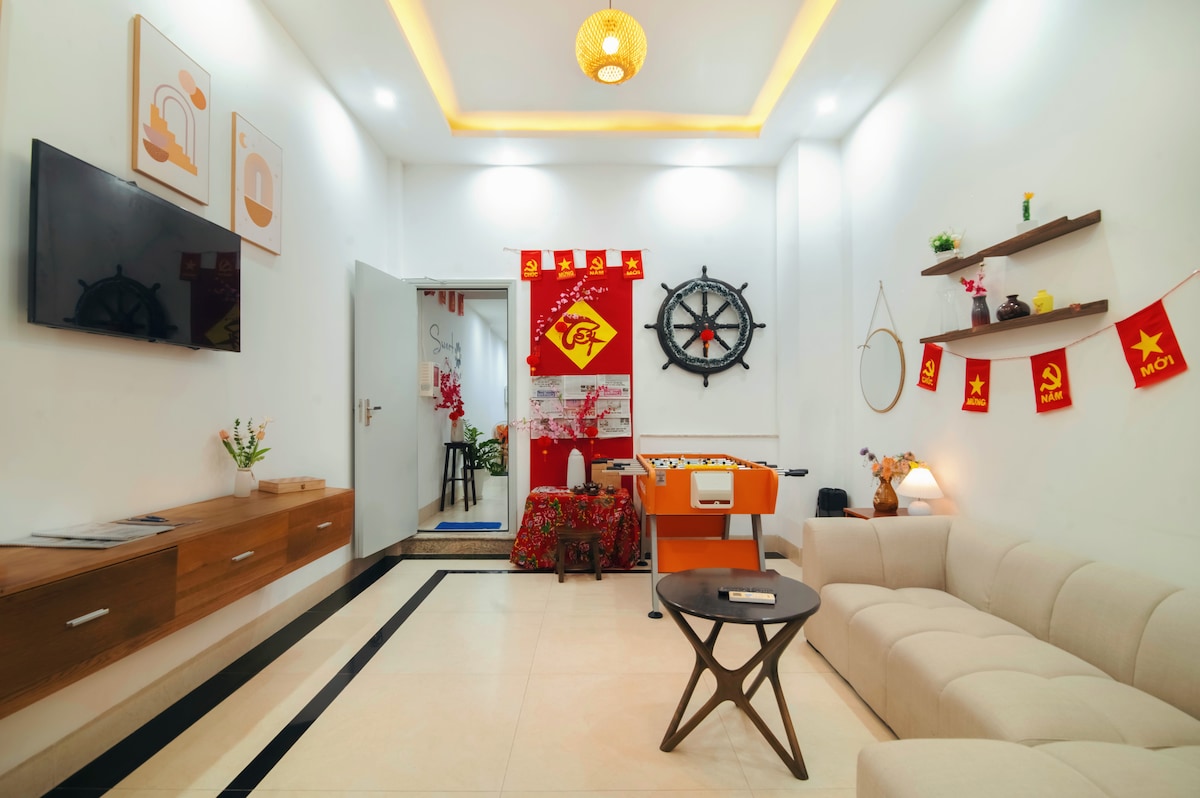 🧘 Discover a cozy healing retreat just 3 minutes from My Khe Beach. Wake up with sunlight and greenery in your private garden, enjoy the living room, a fully equipped kitchen, and private bedrooms with en-suite bathrooms ⭐ What You’ll Love: • Airport transfer for 3+ nights (one-way) • Free 2 bicycles • Cleaning service & Changing towels when requested • Private tropical garden & BBQ • 3 minutes to My Khe Beach • Wi-Fi 500 Mbps + working desk • board games, yoga mat, chess, reading corner