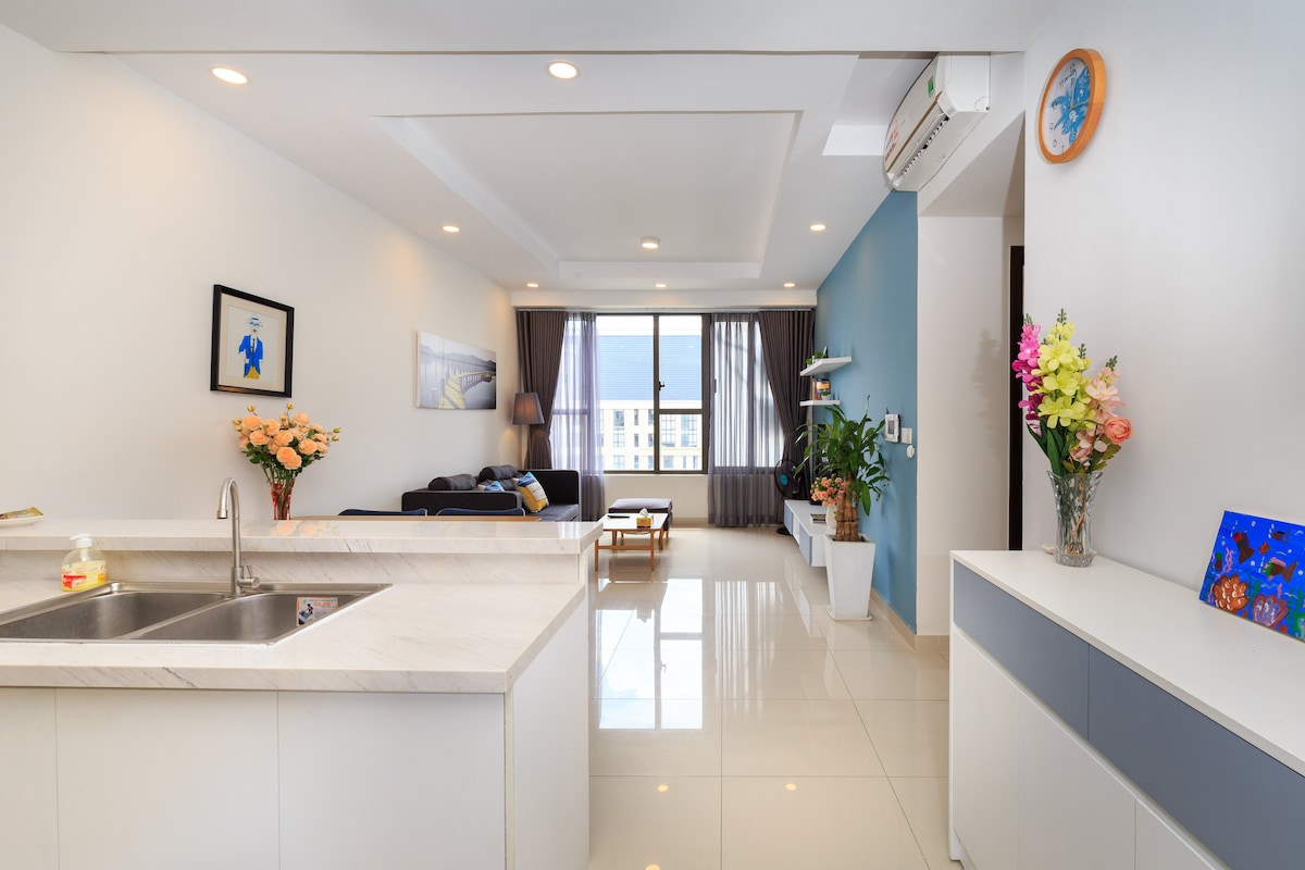 A beautifully designed studio apartment with everything you need, centrally located but hidden away just enough for a peaceful night of sleep away from the heavy city noise. Great for travelers who want to explore Saigon and are looking for quality comfort and a more local experience. - Beautiful swimming pool - Free fast wifi, Cable TV - Free amenities for your living: washer, dryer, AC, fridge, hot water - Kitchen with enough tools for your cooking. Note: Not provide/support VAT invoices