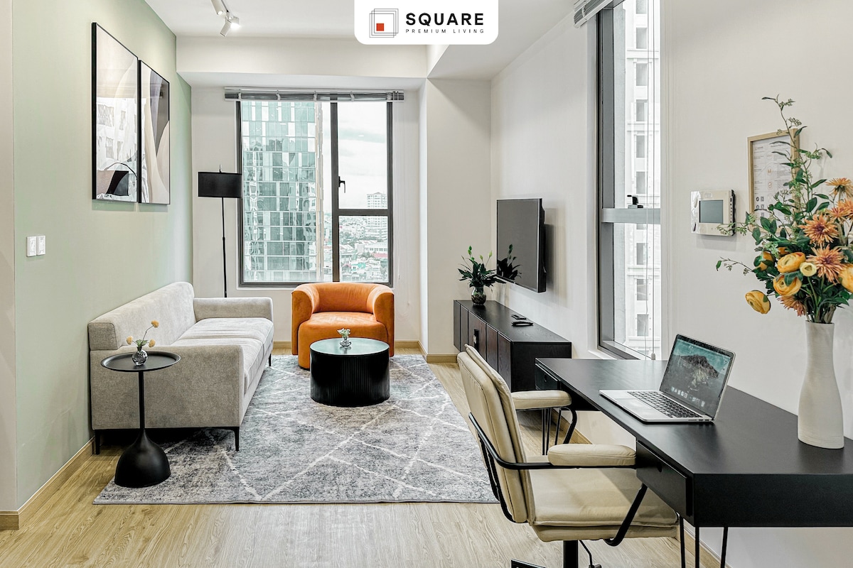 APARTMENT 1-BED 52M2 WITH WIDE VIEW OF THE CITY - 13rd Floor Welcome to Square Living, your "business and modern living combined" home away from home. Our 52sqm unit is fully equipped for both living and working. This apartment is located in The Tresor - OT3 Tower - 39 Ben Van Don, Xom Chieu ward (District 4), HCMC. [The Tresor - Code OT1304] We've prepared a Living Essentials Box filled with snacks, drinks, coffee, and tea to make your longer stays (from 7 nights) extra comfortable.