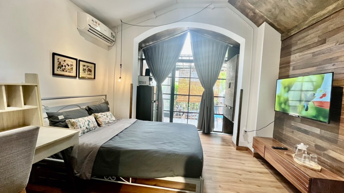Unwind and feel at home in this clean, modern, and stylishly furnished accommodation located in the heart of Ho Chi Minh City. Designed with your comfort and safety in mind, the space offers a variety of amenities including air conditioning, a TV, a comfortable seating area, daily housekeeping, non-smoking rooms, fire safety equipment, and CCTV coverage in common areas.