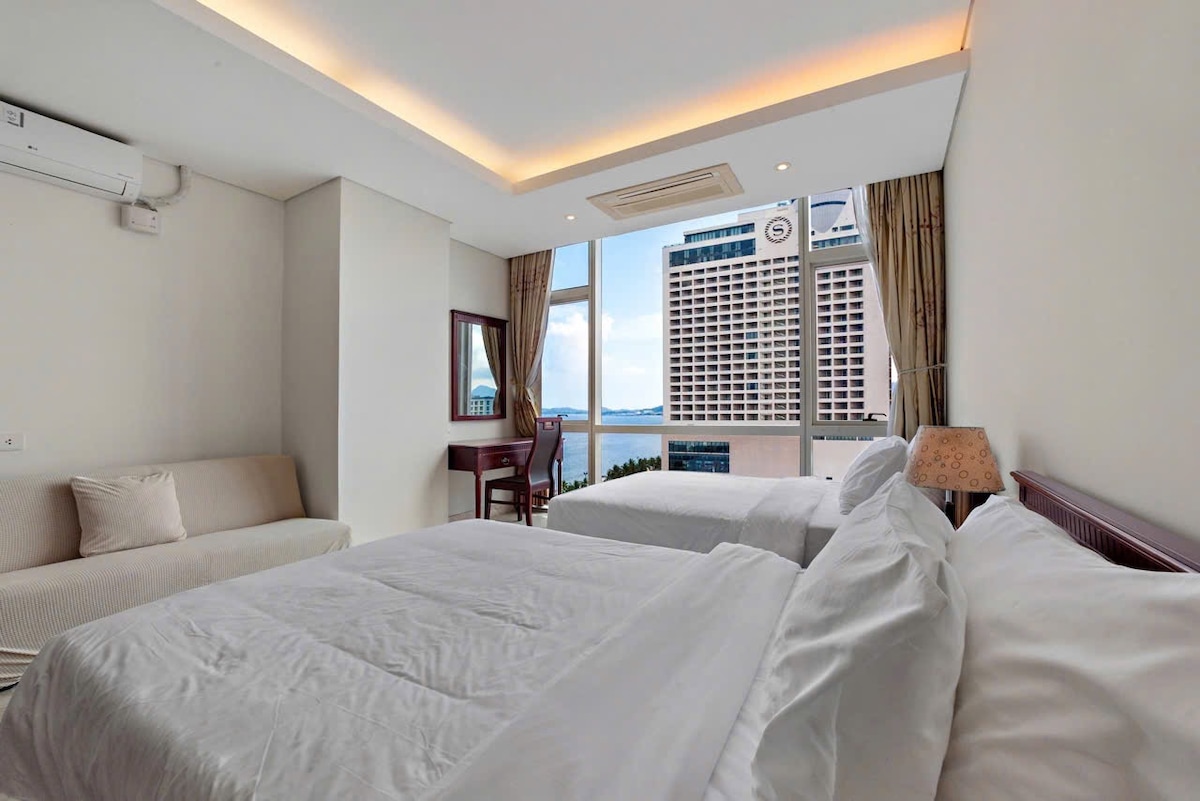 An sea-view and City-view apartment 56m2 on 19 floors which is located in center of Nha Trang City and is at the airport bus stop. This apartment is inside a modern building with shopping mall and is just 2 minutes walk to beach, cinemas, supermarket, pubs, night market, 5-star hotels such as I ntercontinental, Sheraton, Sunrise,.. We have full funiture and convenient with support by Superhost 24/7. Really wonderful and enjoy your vacation with really good air