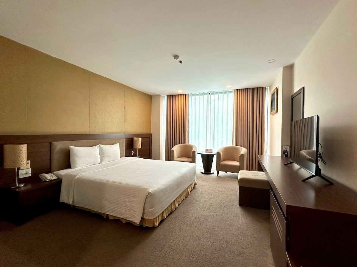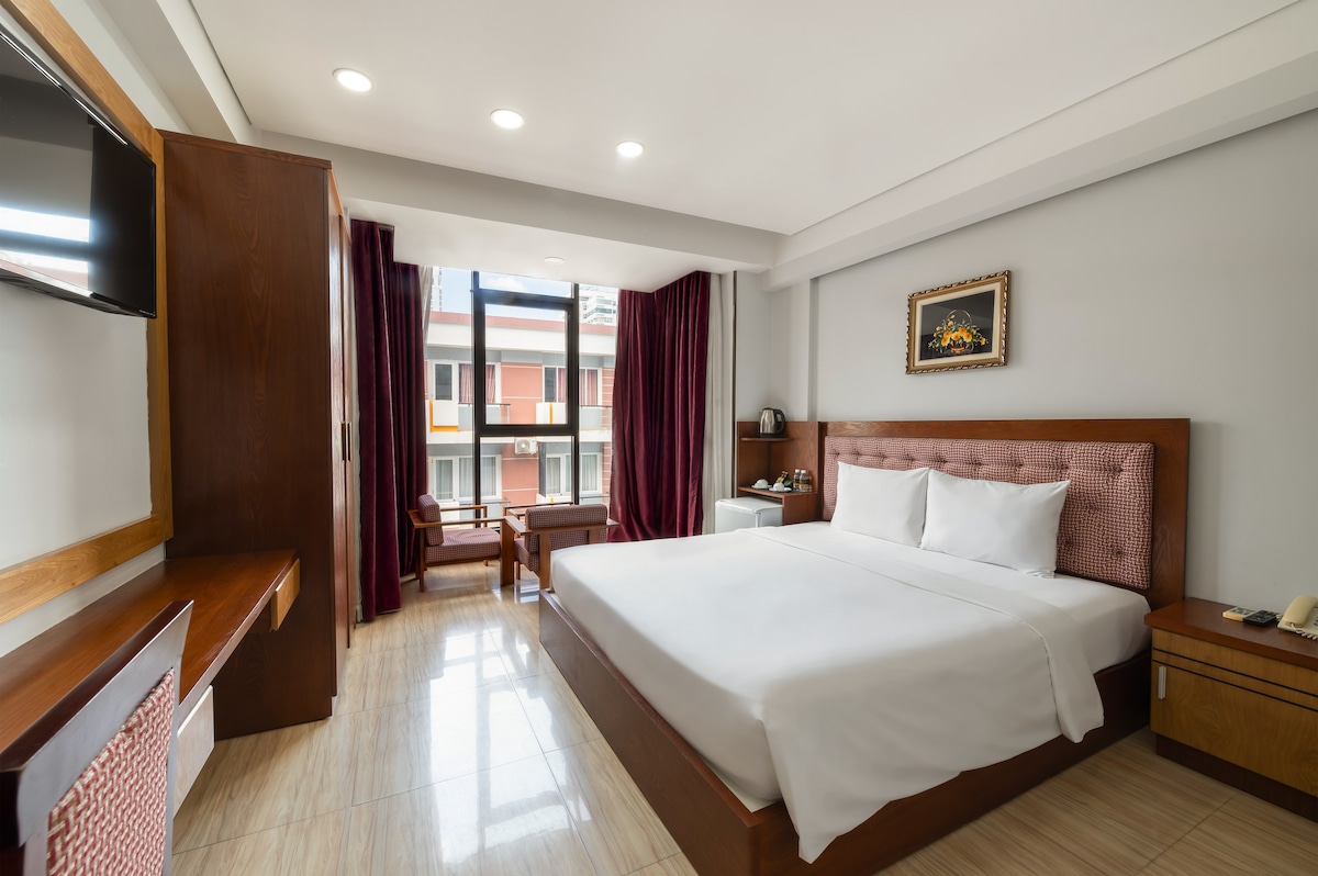 Stay at our 4-star hotel by the ocean in the heart of Nha Trang! Enjoy the outdoor jacuzzi, 24-hour front desk, and free Wi-Fi. Each room includes air conditioning, seating area, flat-screen TV with cable, safe, private bathroom with shower, toiletries, hairdryer, and a kettle. You’ll be steps from the beach, local eats, and nightlife—perfect for exploring the city. Just a heads-up: being in the lively center means you might hear a bit of Nha Trang’s vibrant buzz now and then.