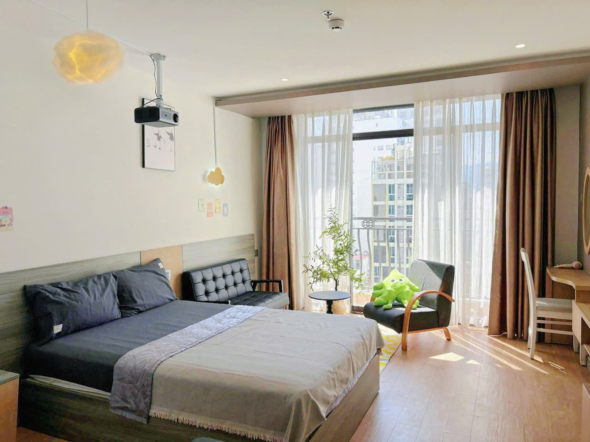 Hello, I am Kristine and have a lot of experience in welcoming guests. This is my new apartment right in the center of Nha Trang city, only 5 minutes by taxi from the beach. My studios are meticulously designed by me with colorful decorations, each room will be decorated according to a different theme. - Cozy apartment with full amenities such as cooking utensils and balcony. - Projector in the room - The building has elevator - Cleaning service Hope you like my lovely place.