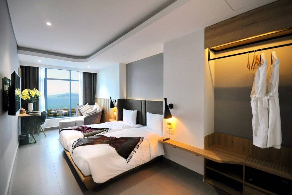 Our Deluxe Double Sea View Rooms have Queen beds and offer ultimate comfort and relaxation. Prague NhaTrang is a charming and contemporary hotel situated in the vibrant coastal city of NhaTrang, Vietnam. Known for its stunning beaches and rich culture, NhaTrang is a popular destination for both leisure and business travelers. The hotel offers an ideal blend of comfort, convenience, and excellent service, making it a top choice for visitors to the area