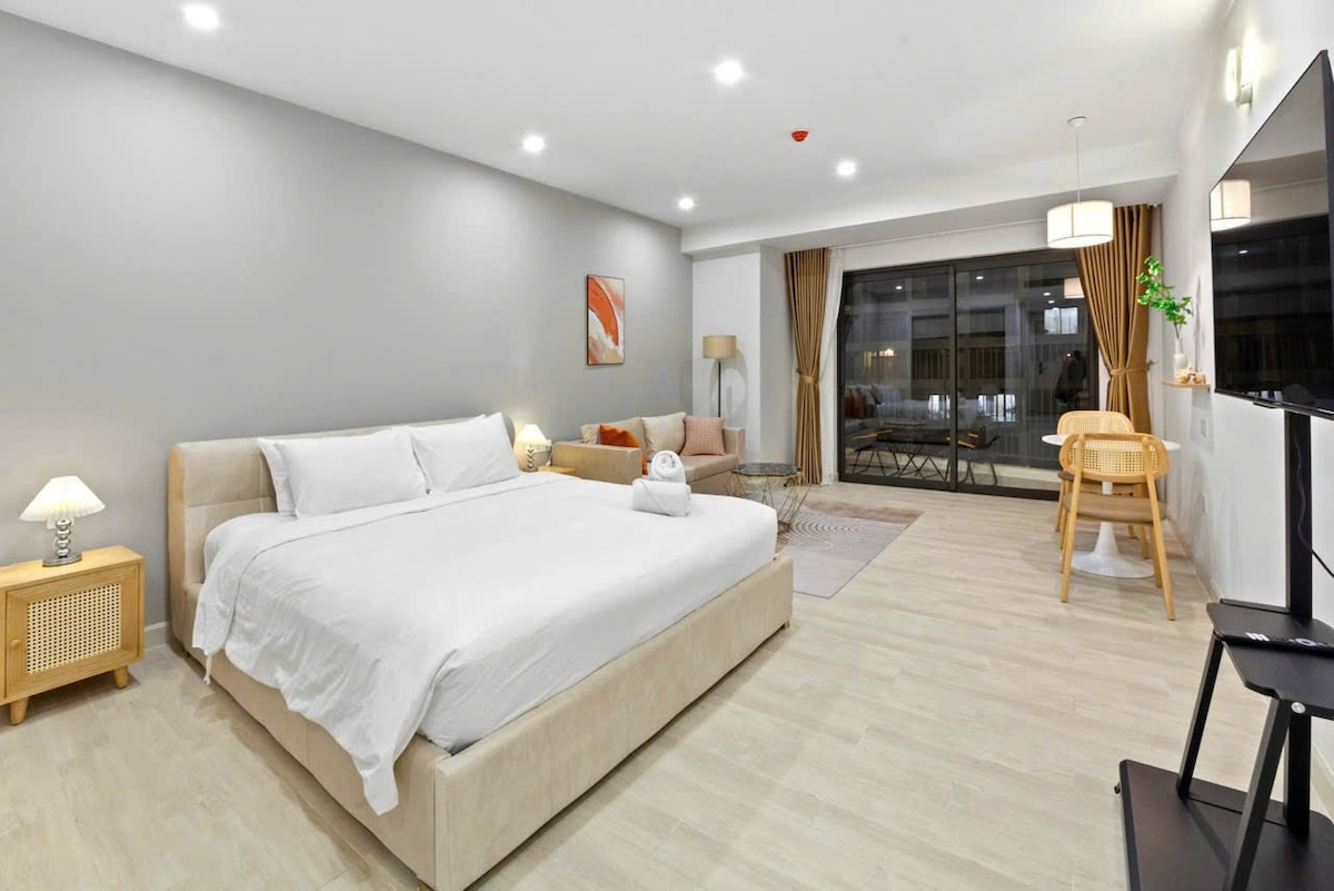 Welcome to our Sunnyhomes ! With perfect location : 2 mins walking to the Tran Phu Road and Beach. 5 mins walking to Tram Hương Tower (Agarwood Tower) and Night Market! 2 mins walking to Vincome Center ( Market), Lotte Center, Xóm Mới Market..! Our home is based on Tuiblue Building/Hotel 5 stars hotels) with comfortable, cozy and Large Studio Apartment ( over 55m2 dimension )!This place is suitable for couples, solo adventurers, business travelers, groups of people, families