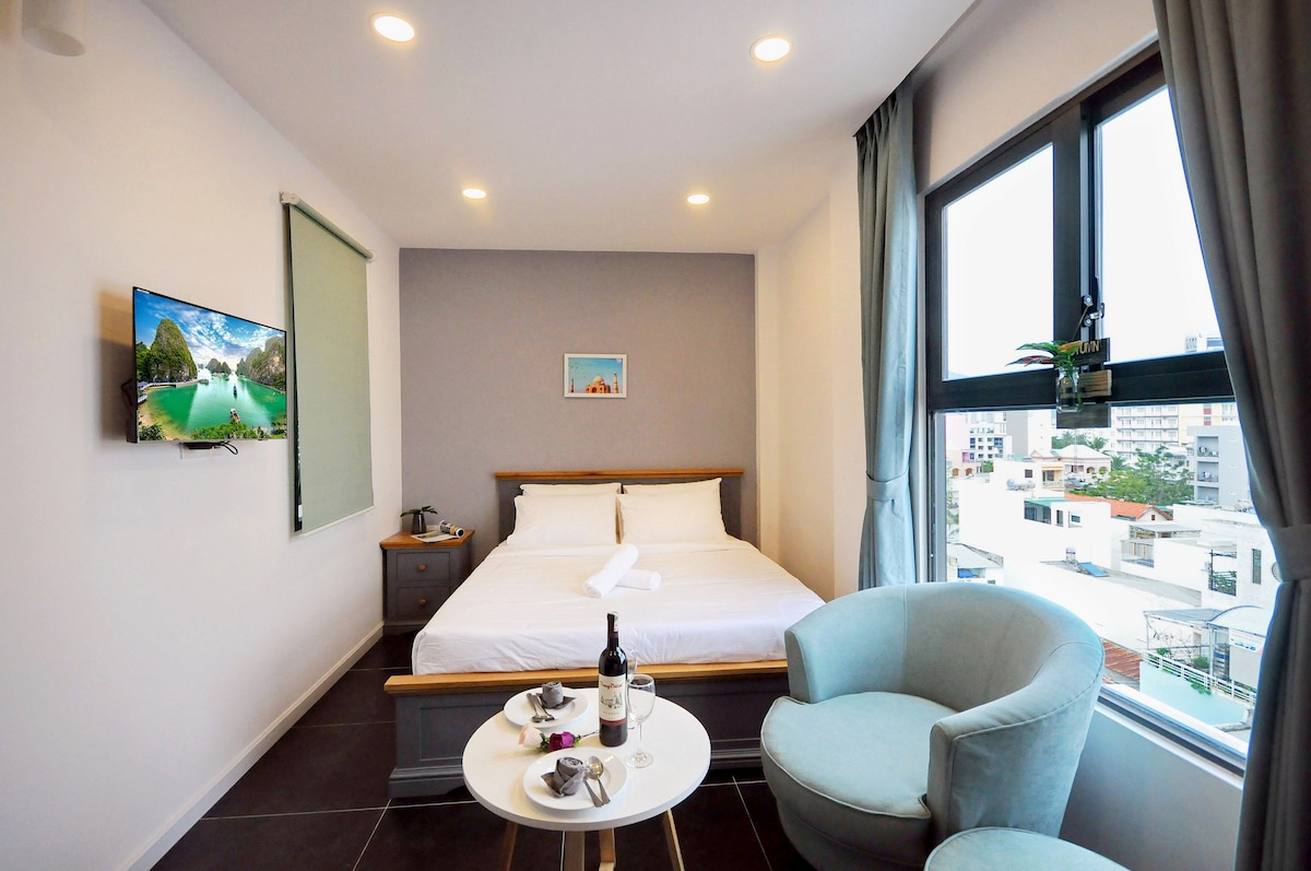 New building,500m to the beach,300m to minimart,safe_quiet place.A perfect place, comfy, stylish and fits in your space. Comfortable bed...make you feel be in your home. The room is fully furnished with Internet-Tv, Wifi... it takes 7 mins walking to local-market with everyday fresh seafood, meat, vegetables, fruit and other local product. 1km to Hòn Chồng Sight-seeing 500m to local-market with fresh fruit and seefood 2km to I-resort ( hot spring mud bath) 2km to Tháp Bà Tower 4km to center city