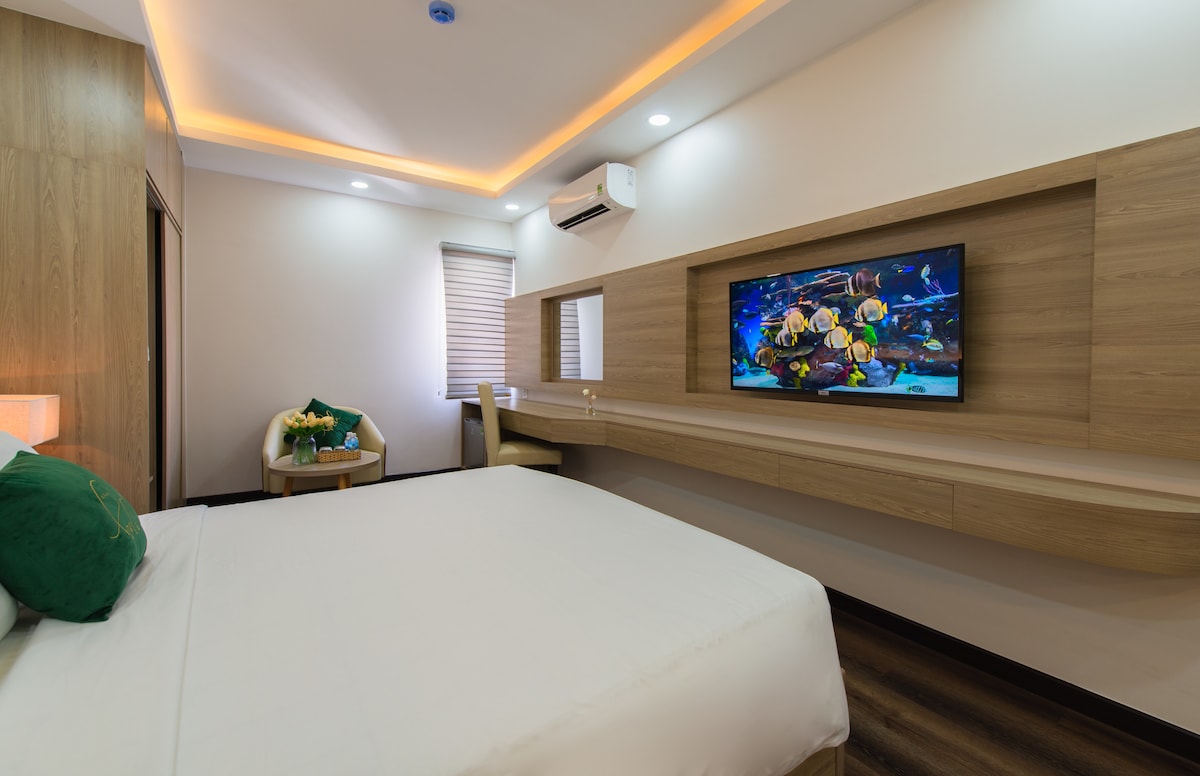 DISCOUNT 20% In front of our hotel, the beach and sea are amazing! You will have a memorable trip in Nha Trang. Having a stunning view, this room is comfortable for 2 person. We make sure it fresh & clean. - 1 queen bed - Bed is very comfortable - Window & lots of natural light - Private bathroom & full of essenitals - Elevator, air conditioner, fridge, water kettle, fast wifi, TV, table, chair, hair dryer - FREE cleaning service & parking - Receptionist works 24/7 #Add: Pham Van Dong street