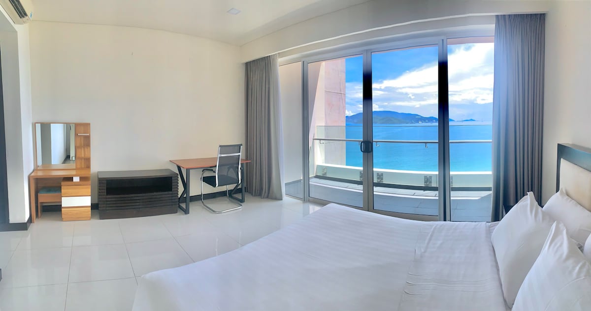 WE ARE NORTH NHA TRANG (4.5km from City Center, around $4 by grab) The sunlit balcony at day time & romantic sunset in the evening thru' bay window in ur room. What we OFFER: - Opposite the beach | Direct sea view from 36th floor - A lift down to shops, restaurants, convenience stores - A film projector in Master Bedroom - 2 bedrooms, 2 bathrooms What we DON'T offer: - We are NOT central location If you want central, the apt is not and perhaps you can consider others.
