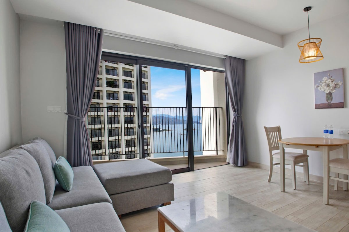 An sea-view apartment 52m2 which is located in center of Nha Trang City and is at the airport bus stop. This apartment is inside a modern building with shopping mall and is just 2 minutes walk to beach, cinemas, supermarket, pubs, night market, 5-star hotels such as Intercontinental, Sheraton, Sunrise,.. We have full funiture and convenient. Really wonderful and enjoy your vacation with really good air.