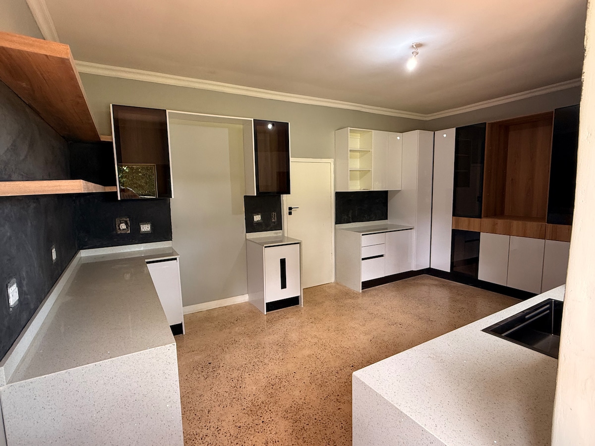 Nestled in a serene neighborhood in Vryheid, Webb's is a charming self-catering house featuring 2 bedrooms, with private entrance on the host's property. The main bedroom can accommodate up to 3 guests and the second bedroom can accommodate up to 2 guests comfortably. The open-plan layout includes a sleeping area, an en-suite bathroom, a TV with streaming services, minibar fridge, heat-and-eat facilities. Linen and towels are provided and Wi-Fi is available for guest's convenience.