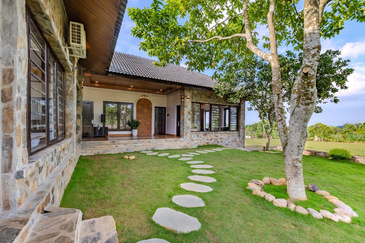 Thanh Xuan Garden Villa offers a luxury retreat set in the natural beauty of Cuc Phuong. This modern villa features three lake-view sides with a stream running through the garden, five spacious bedrooms with large glass windows and elegant bathtubs, and a private 150 m² pool. A 2000 m² garden provides space for dinners, BBQs, or boutique events. Guests enjoy free access to hot and cold mineral pools, premium sports areas, and resort bicycles. Ideal for private, peaceful retreats great escape!