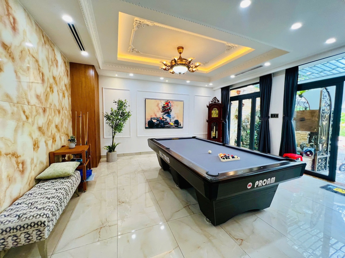Villa tân cổ điển châu Âu, sang trọng, yên tĩnh giữa lòng thành phố. Gồm 1 hầm, 1 trệt, 2 lầu, 9 phòng ngủ (WC riêng), thêm 2 WC ngoài. Phòng khách trần cao, nội thất cao cấp, piano grand. Giải trí với karaoke âm thanh vòm, bida, hồ bơi mini trong nhà. Phòng ngủ rộng, ban công xanh mát, bồn tắm thư giãn. Bếp đầy đủ, BBQ ngoài trời, vệ sinh miễn phí, hỗ trợ check-in 24/7. Lý tưởng cho gia đình, cặp đôi, nhóm bạn. Rất hân hạnh đón tiếp quý khách! Trân Trọng!