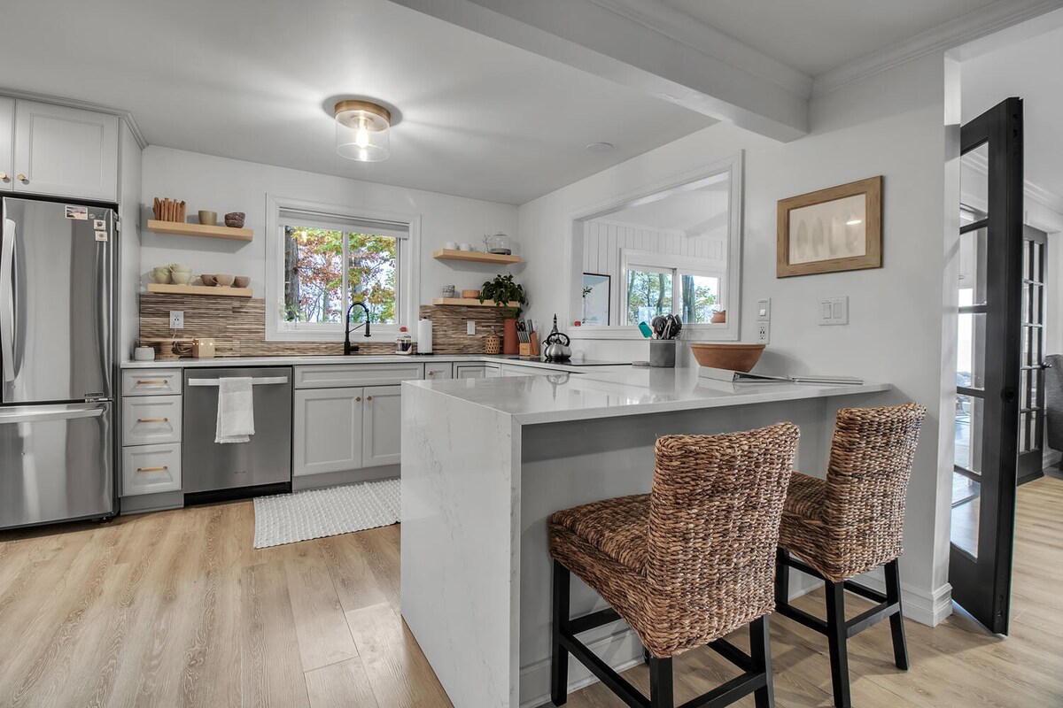 You’ll love our beautiful newly renovated cottage by the lake!! Outside you'll enjoy a really large yard: great to play lawn games, lay in the hammock or recline under the covered porch with a great book! Inside you'll enjoy a spacious living room where you can curl up by the electric fireplace or enjoy a movie together. Full kitchen & separate dining room make sharing meals or playing games indoors easy. For family vacation, personal retreat, or a fishing excursion, this is the perfect spot!!