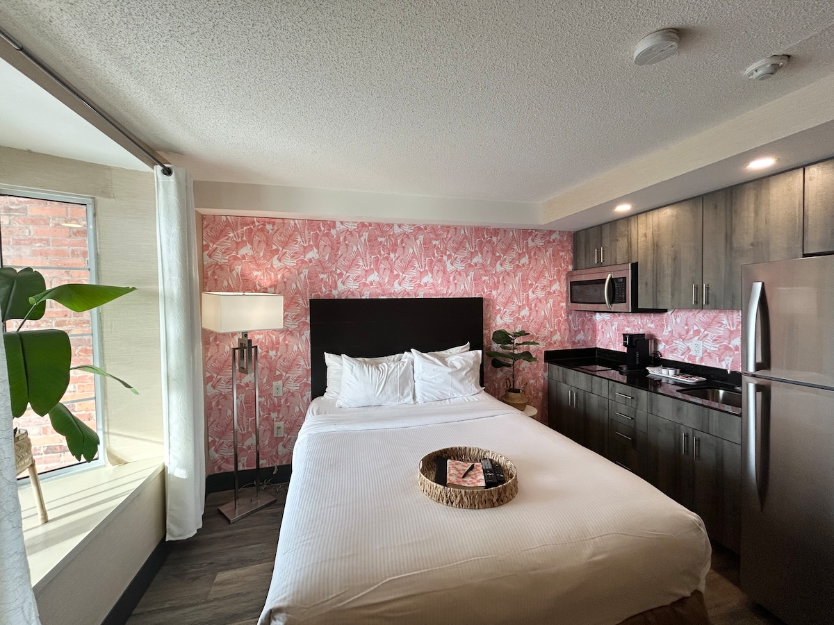 Welcome to the Tropical Oasis Studio on Lundy's Lane- 9 Minute drive to Niagara Falls+ Clifton Hill+ OLG Stage & Casino. Studio Apartment set up with 1 Queen Bed, 1 Bath + Kitchenette and a small sitting area. FREE Parking located directly in front of the apartment. The space is completely set up and comes with everything you need: Smart TV, Wi-Fi, towels/linens/blankets/pillows, cooking supplies, soap/shampoo/conditioner, & Smart lock for self-check in. *Must not live locally to rent