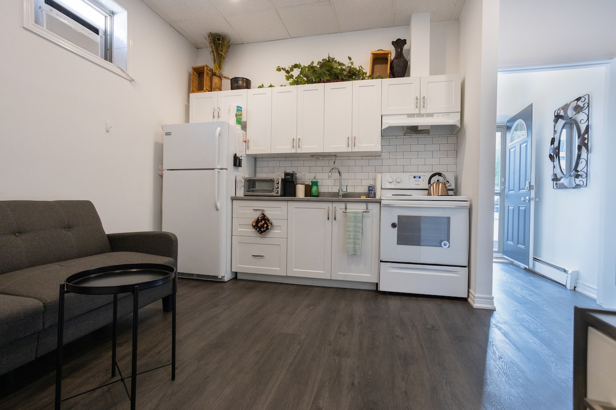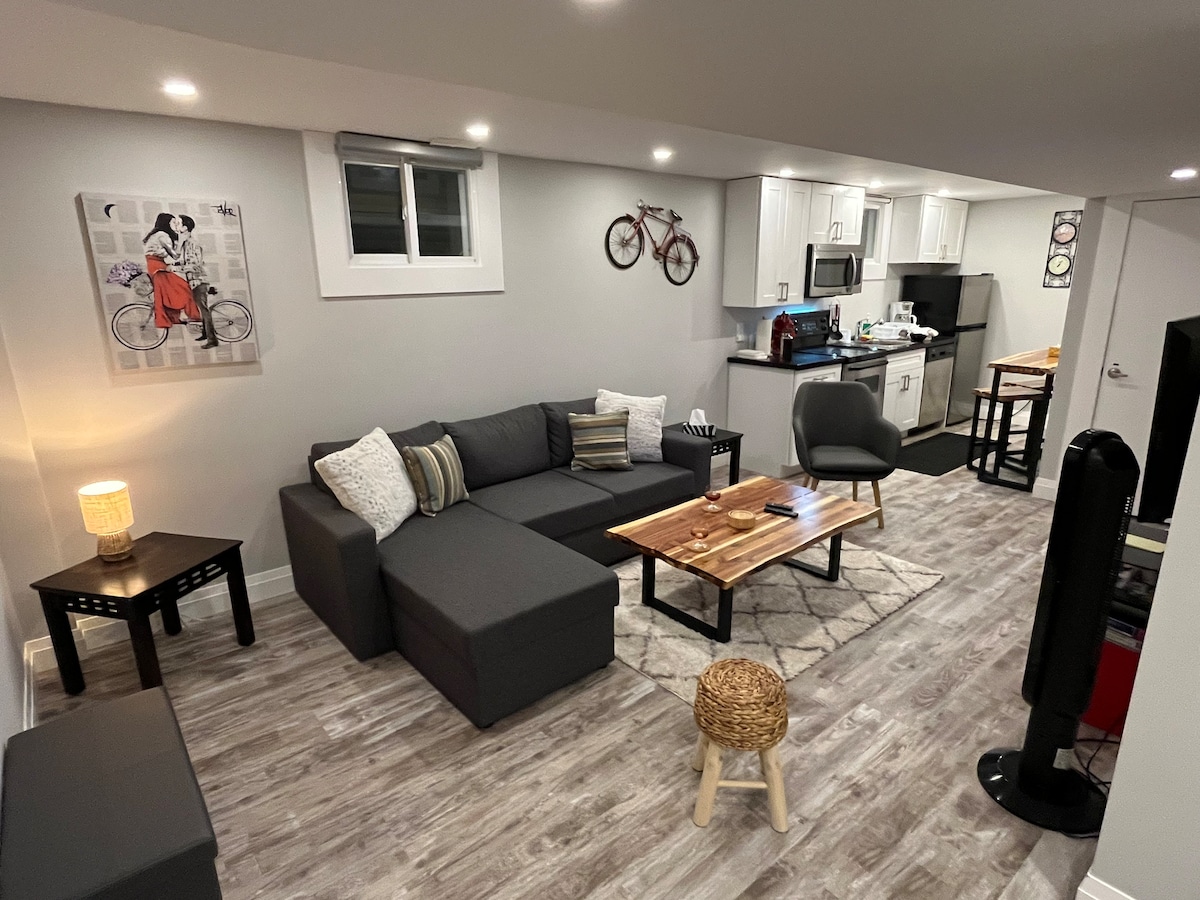 Welcome to our lovely apartment!! The perfect location for your Niagara Falls getaway -- Walking distance to the Falls, Clifton Hill and the Casino. 10-15 mins. -- Free parking on premises -- Queen-sized bed and a pull out couch for additional sleeping space -- Fully equipped kitchen with a Keurig and a toaster oven -- Free wi-fi and a smart TV with Netflix -- newly renovated, brand new kitchen, floors and bathroom. We love it! you will too :-)