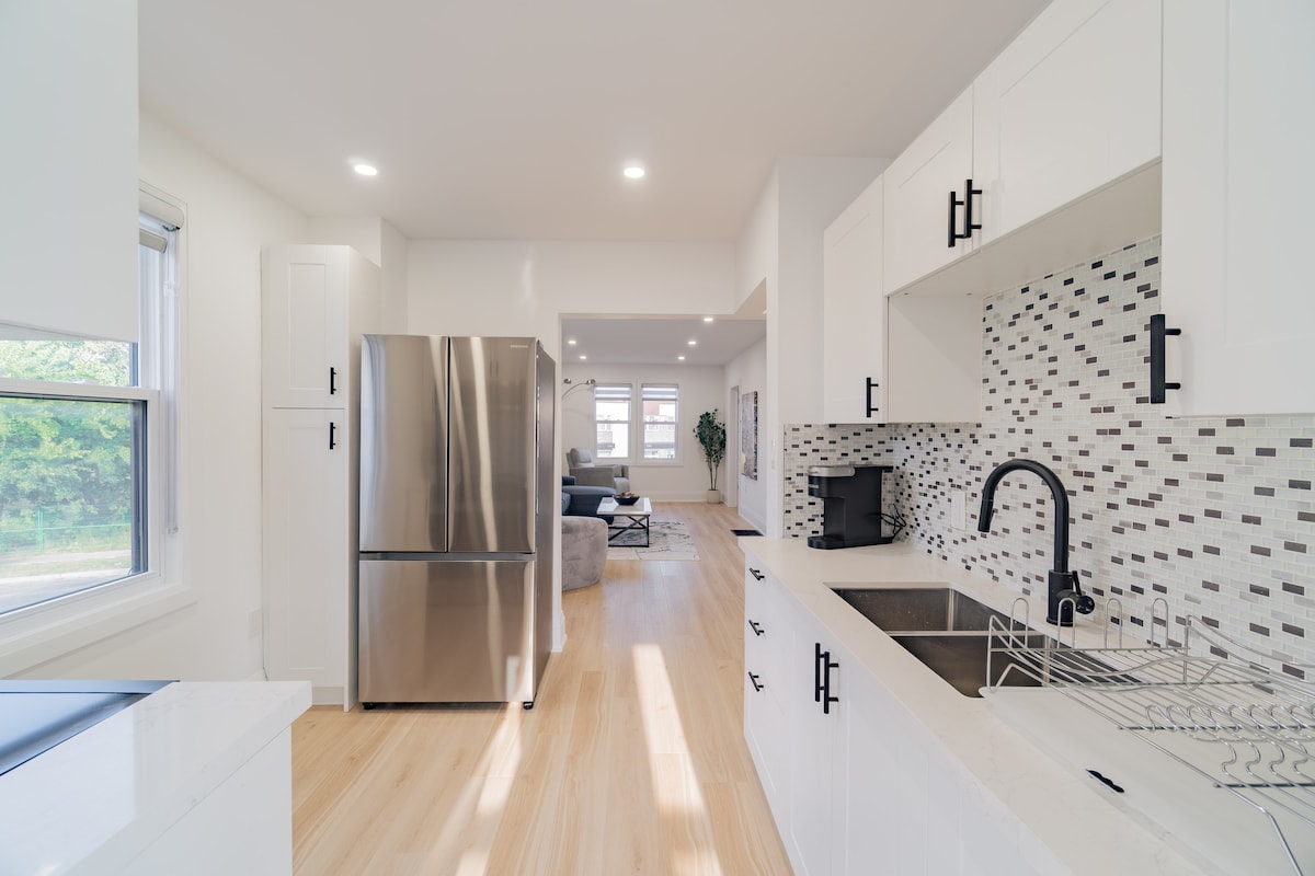 This 2,200-square-foot home with 9-foot ceilings is perfect for families with kids, groups of friends, and business travellers. The house has new kitchen appliances, a private parking garage, and laundry machines. It is located in a serene neighbourhood, which is perfect for a relaxing getaway. The house is just a short drive away from the falls and other popular tourist attractions! ✔️ large 4K smart TV ✔️ brand new appliances, amenities, luxury finishes. ✔️ brand new luxury appointed furniture