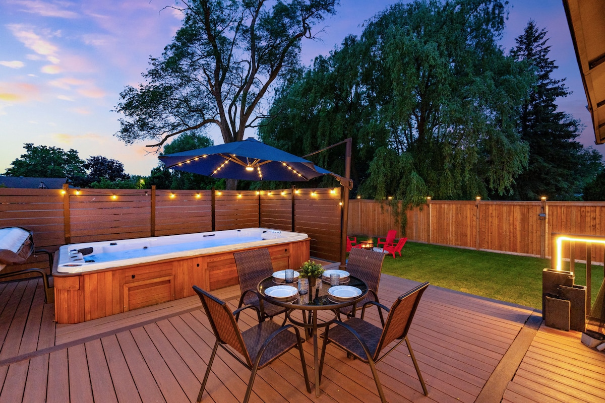 Enjoy the perfect getaway at this centrally located Home, with amenities such as Pool, 8 person Luxury Hot Tub, Large spacious Deck with Dining Set, Gas BBQ, Gazebo Covered Seating Areas, this backyard oasis has it all! Private Home Surrounded by Orchards Close to all the Major Wineries, and only a 5 min drive to the historic Downtown of Niagara on the Lake.