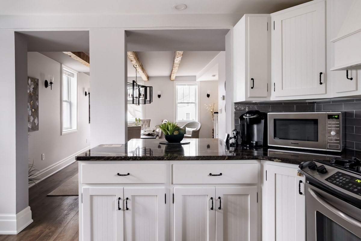 Welcome to Vineyard Square! Our brand new stylish space in the very heart of St. Davids, Niagara-on-the-Lake is a perfect location to explore wine country, Niagara Falls and all the region has to offer. Welcoming guests with: - 1 Bedrooms, 1.5 bathrooms, in a fully private apartment - open kitchen, dining, living area w/ sofa bed - top quality furnishings, linens and design - elevator access and easy self check in With local, caring hosts - we hope to welcome you to our new Airbnb!