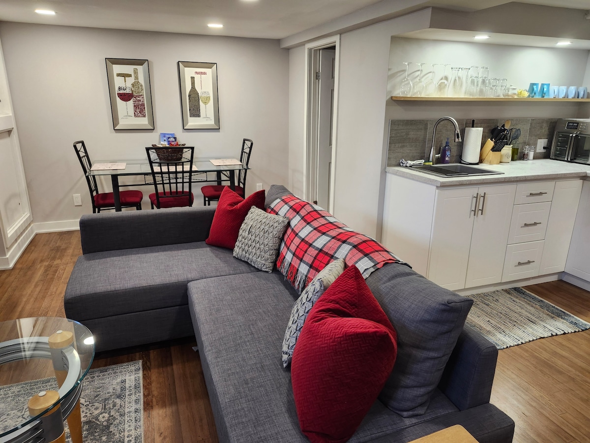 舒适的单卧室地下公寓,带热水浴缸。