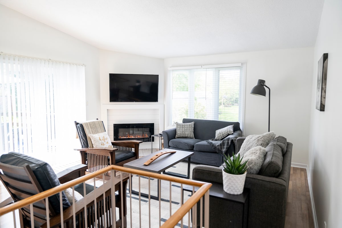 Escape to our spacious luxury loft apartment which is located just a short drive to renowned wineries & historic downtown Niagara-on-the-Lake, ON. Our 3 bedroom, 2 bathroom haven is perfect for up to 6 guests. Whether you're here for a quick getaway or a family adventure, you'll love the modern touches & inviting atmosphere. Our luxury loft has tall vaulted ceilings, a modern fireplace in the living room and even a private balcony for guests to enjoy.