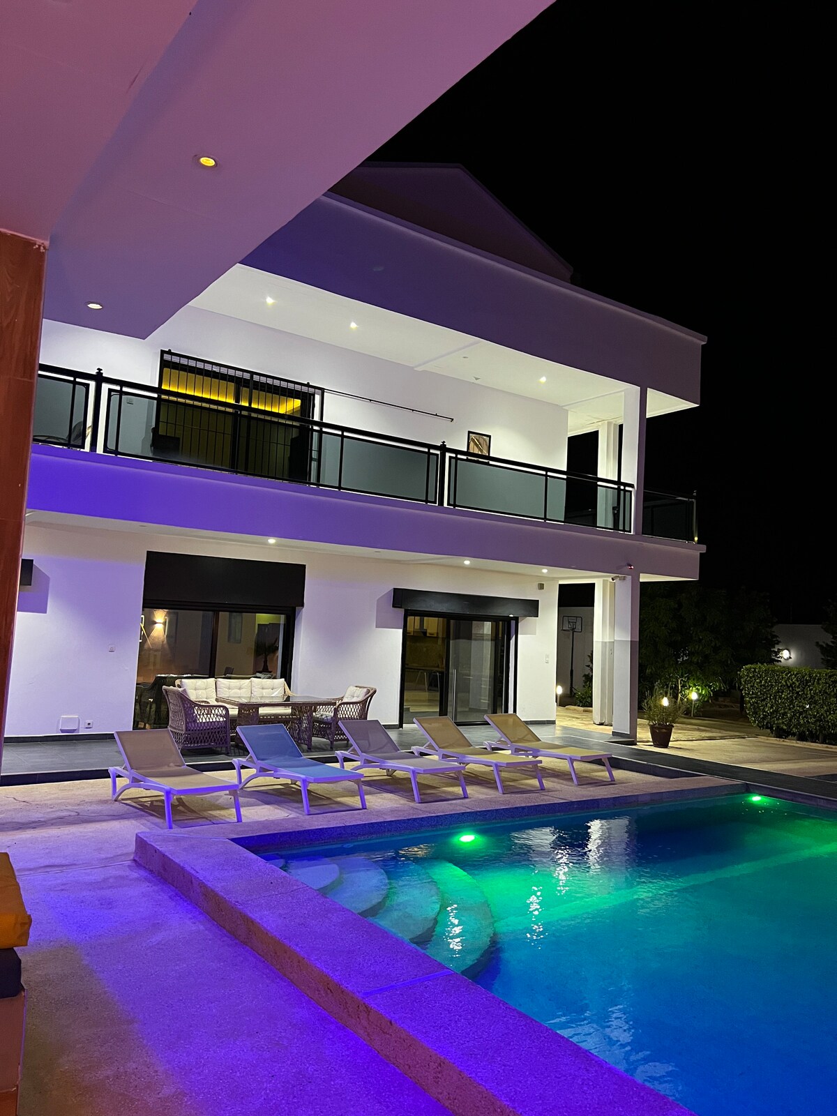 Villa d'Architecte Contemporaine à Saly Portudal. Bienvenue dans votre oasis de tranquillité au cœur de la cité balnéaire de Saly. Notre villa blanche, toute neuve est bien plus qu'une simple location de vacances, c'est une expérience inoubliable qui vous invite à vous évader et à vous ressourcer dans un cadre idyllique. Elle est nichée dans un jardin paysager clos de murs tout prés de l hôtel la Tanière, garantissant une intimité absolue.
