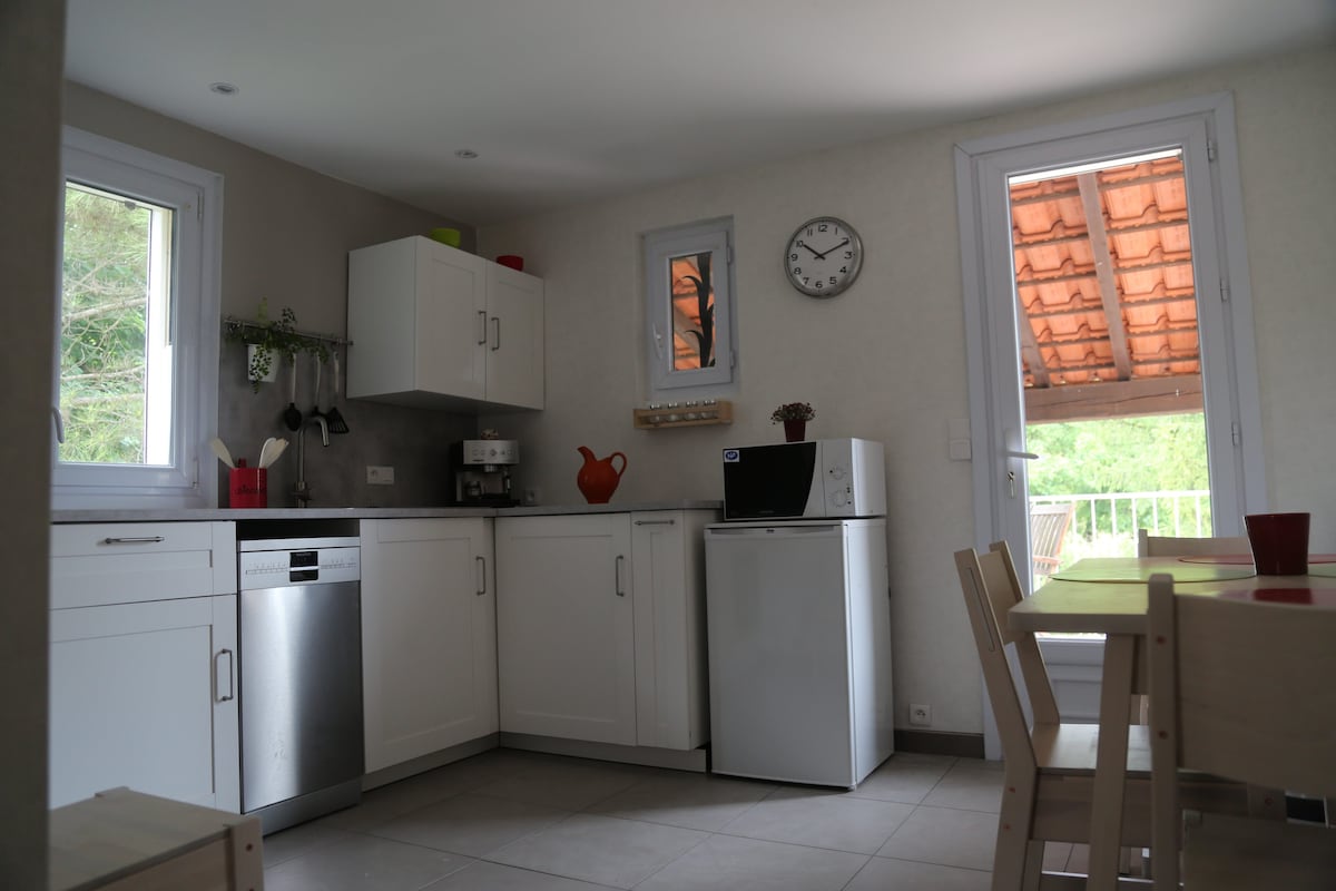 Le studio de 30 m2 se situe sous les voûtes de l’ancien four à pain de notre maison. La pièce à vivre se compose d’une petite cuisine équipée de l’essentiel, ainsi qu’un coin nuit avec un lit double; au fond des voûtes se cache une petite salle de bain indépendante. Isolé à la campagne au pied des montagnes, la terrasse privative vous offrira une belle vue sur la vallée de la Durance. Idéal pour se détendre vous pourrez également profiter sur place de départs de balade et du site d’escalade.