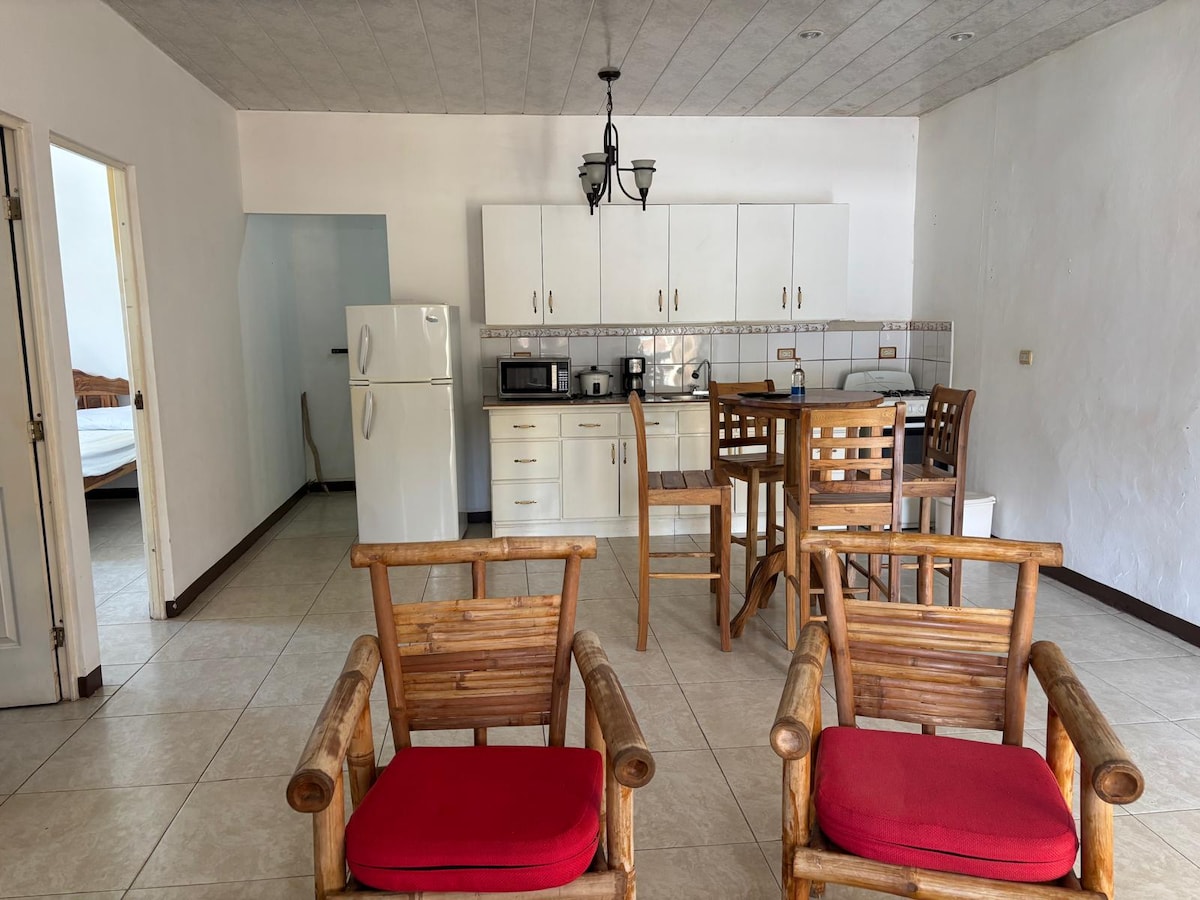 Working remotely and looking for an inspiring place, nature time and a comfortable place to work and live? Casa del Arte is located walking distance from the beach, has a beautiful ocean view with the sun setting right in front. Everything you find in this place is local craftsmanship, from the coffee cups, to the furniture, to the tiles.. Get inspired by the colonial feel, while enjoying amenities like AC, hot water shower a fully equipped kitchen and fiber optic internet