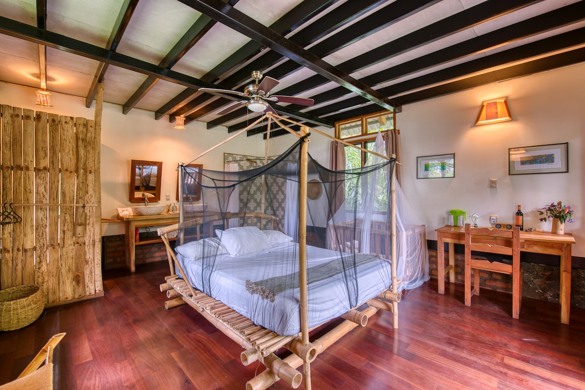 Beautifully hand-crafted & professionally designed tropical loft with forest and ocean views. 400 meter walk to the beach on a private and scenic path. (During dry season) Much attention to detail. Full of art. Very comfortable beds with new high quality cotton sheets and mattresses. Ideal for 2 to 4 people but sleeps up to 6 if needed, using the two sofas in the patio. Breakfast, lunch and dinner available on a pre order basis.