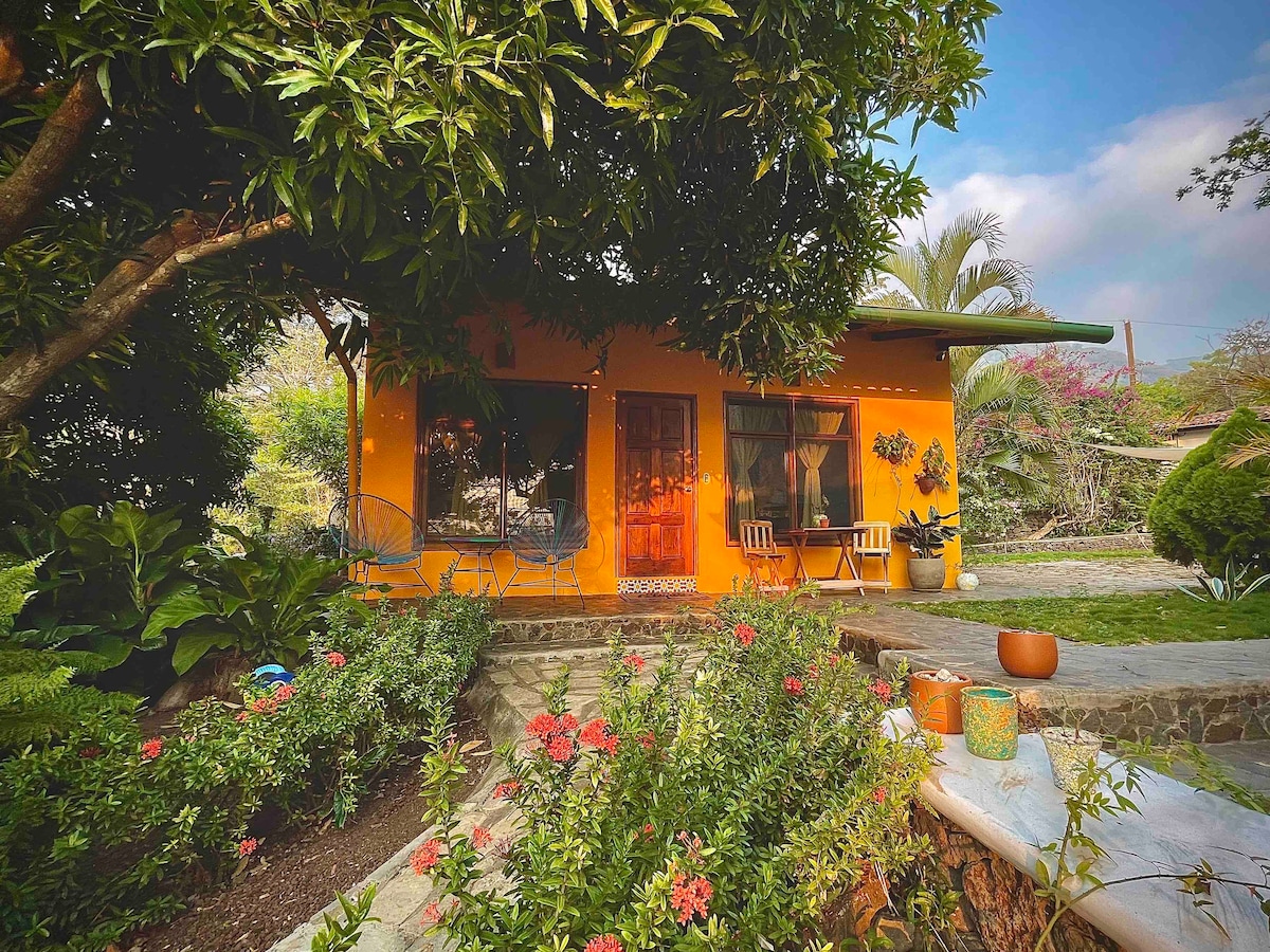 Casita Mango is one of the two cabin we offer. It is located on the garden side with a nice partial view of the lake straight from your bed! We rent with A/C. Hot water and Smart Tv... everything you need to live long-term in full comfort while being in the jungle far far away from the city blues. Come relax in the shade, swim or float in a tube at the public beach, or take our Kayaks for an adventure on the lake! Breakfast available for 7.50 US$ per person Bring your pets for 7.50 US$