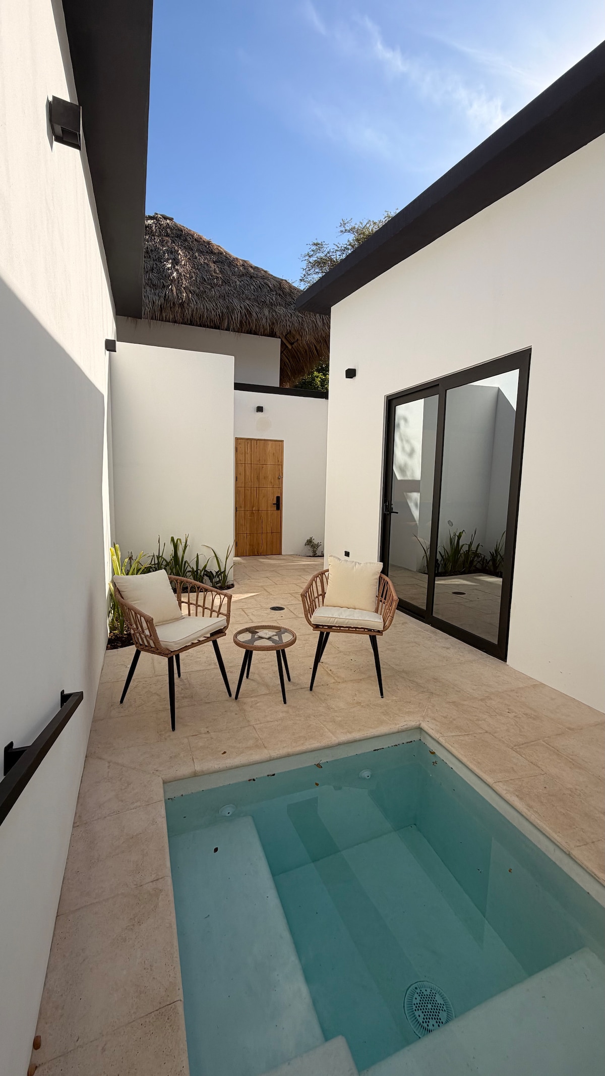 Brand new stylish modern casita with pool located in the Brisas de Alma gated community directly on the beach at the world famous Boom. Has AC, ceiling fan, full bath w/ shower, small fridge, electric stovetop, microwave, high speed wifi (rare in Nica), and solar w/ battery back up. Located less than 100 yards from the sand directly on the Boom. Our bilingual local host is available for anything you need including transportation, rentals, boat charter, surf info, photos, volcano tours, etc.