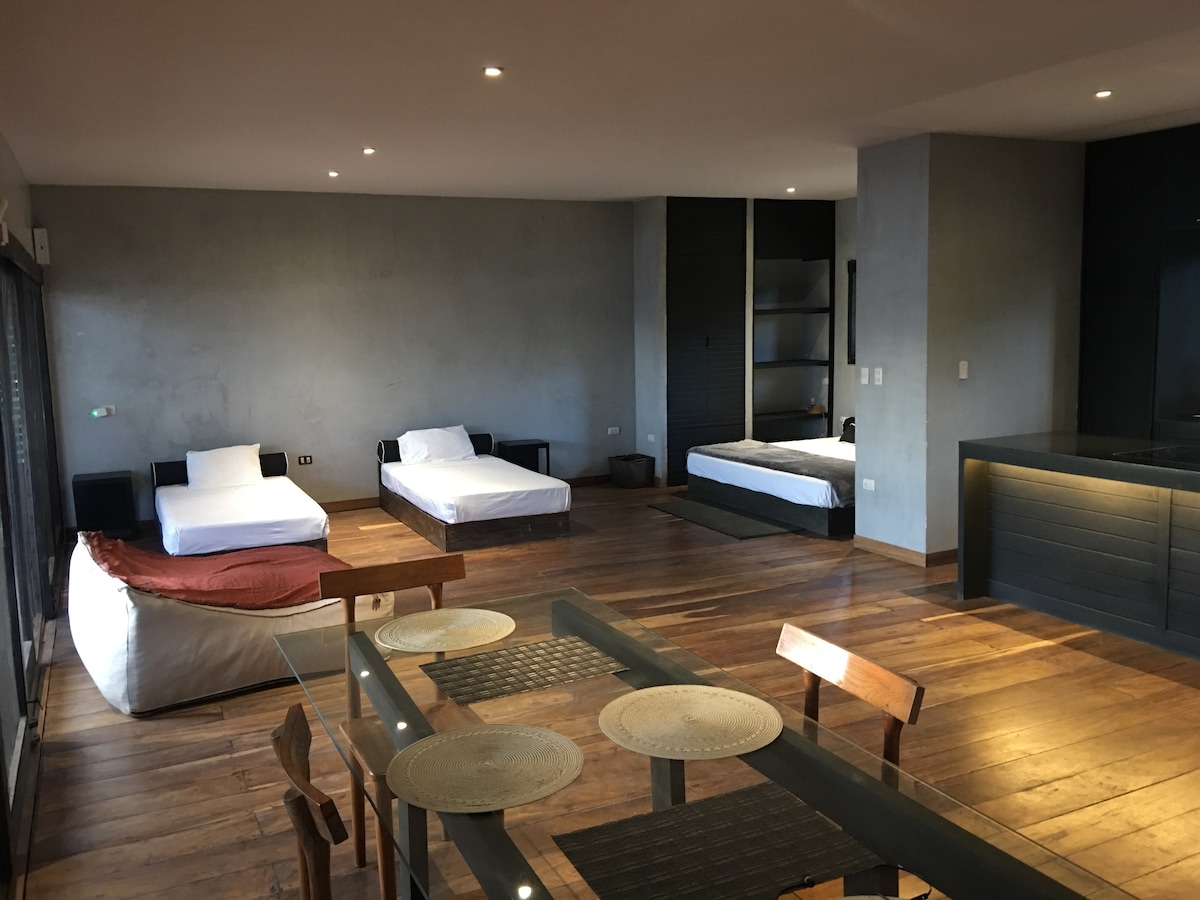 ¡Sé nuestro huésped y disfruta de las encantadoras vistas al mar desde nuestro alojamiento! Esta espaciosa habitación está justo enfrente de la playa y tiene los elementos básicos para disfrutar de un buen descanso. Tiene acceso independiente y está equipado con ventiladores, cocina pequeña, refrigerador, baño, mesa comedor y dos camas dobles. Estamos ubicados en la zona más tranquila de la playa de El Tránsito, a solo 15 minutos caminando de la zona de surf y del pueblo principal.
