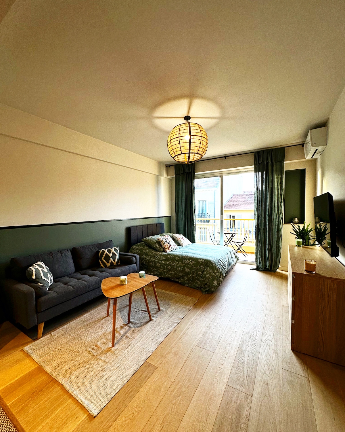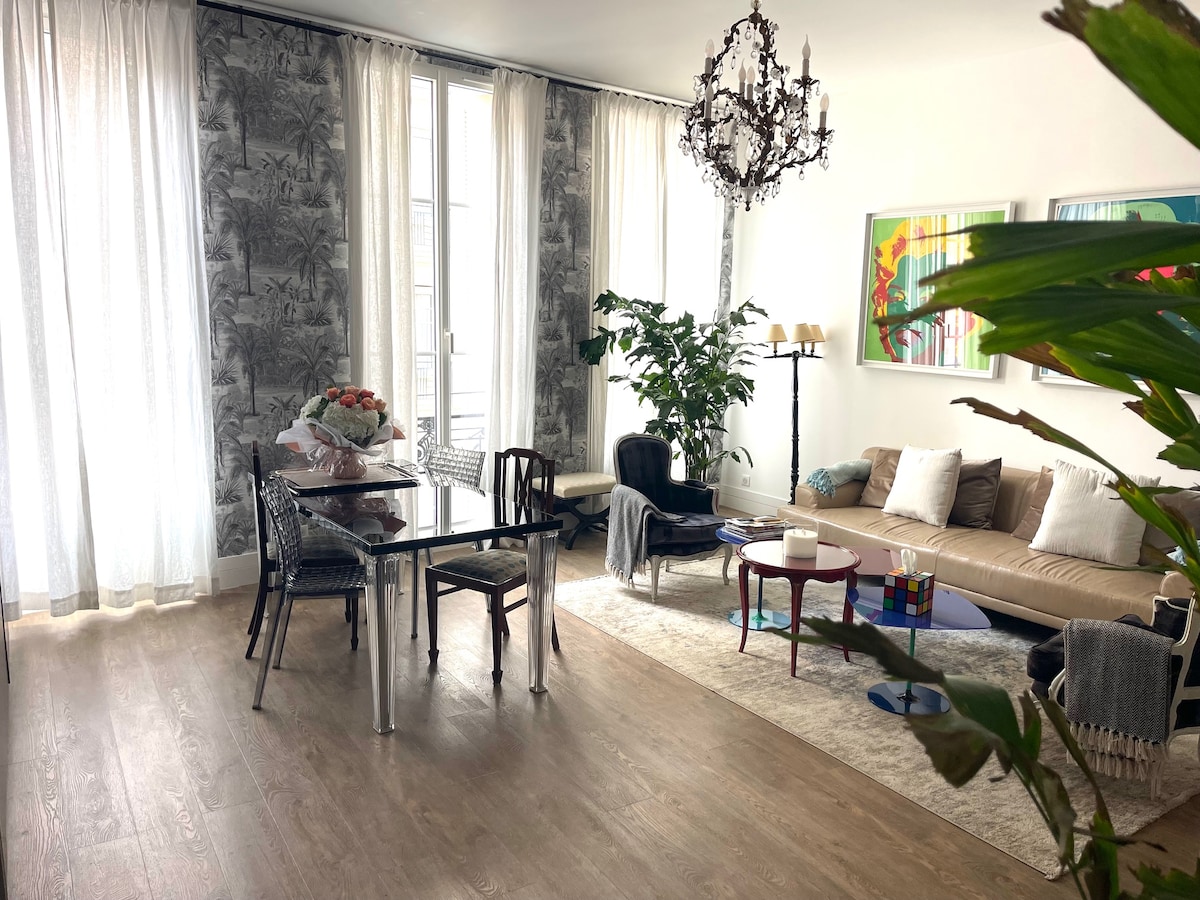 Emplacement exceptionnel. Bel appartement contemporain, entièrement rénové et climatisé au cœur de la ville. Entièrement équipé: lave-vaisselle, lave linge, Smart TV, wifi, climatisation, 1 chambre et salon / salle à manger et 1 chambre en mezzanine accessible par un escalier L'immeuble avec ascenseur est calme et sécurisé. Collé à l’avenue Jean Médecin, la place Masséna, Les Galeries Lafayette, le parc de la Coulée Verte. La vieille ville et les plages sont à 5 minutes à pied.